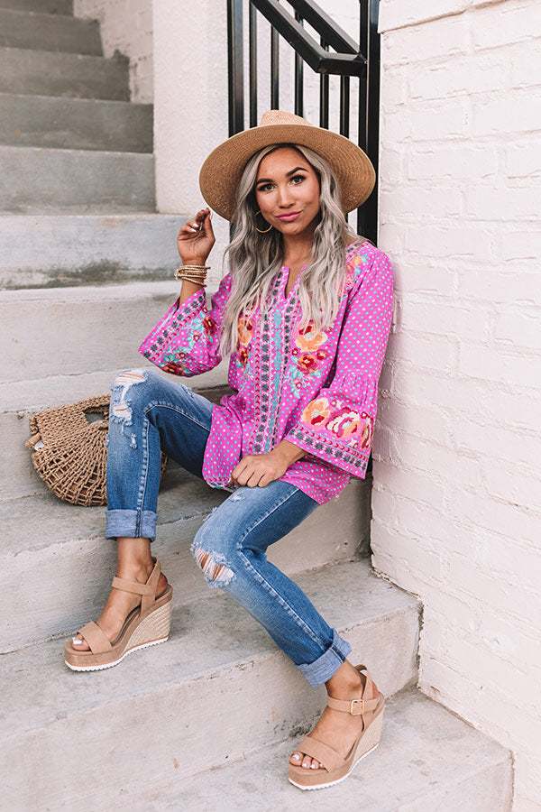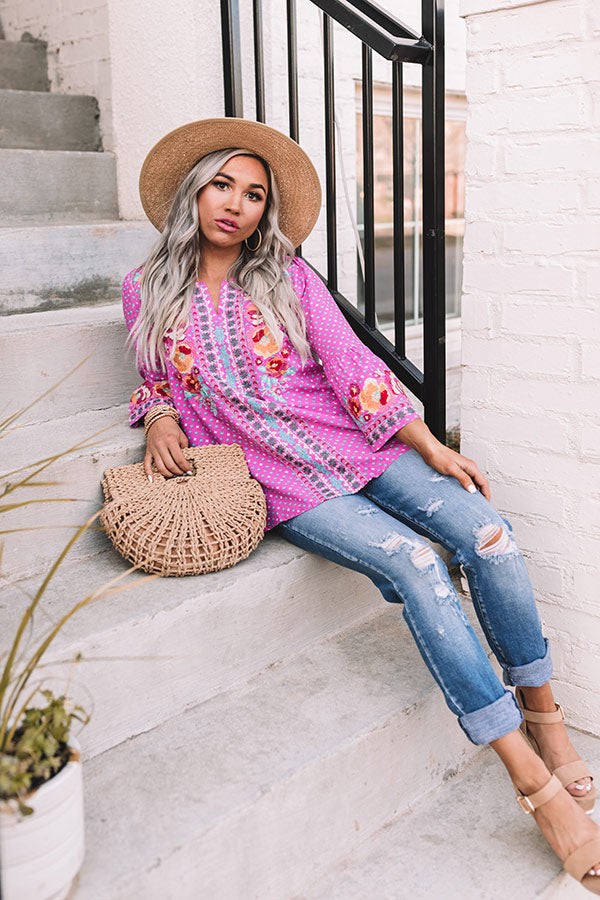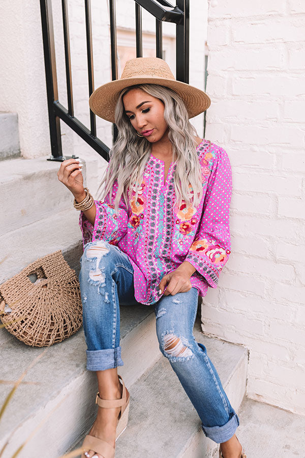 Easy To Admire Embroidered Top In Pink