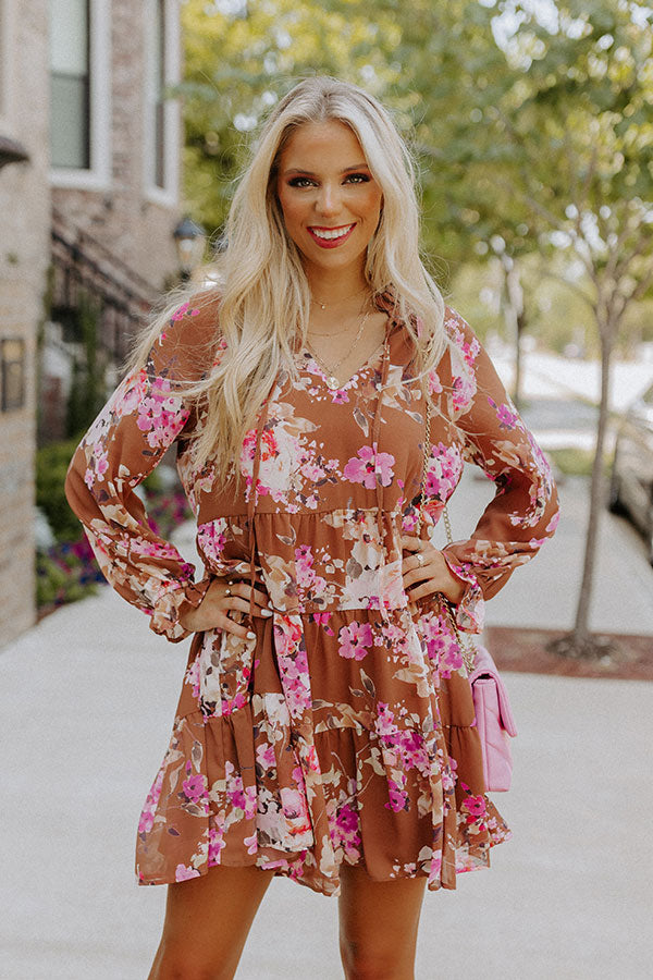 Your style is sure to bloom when you complete your look with our charming rustic rose hued 'Easy To Please' shift dress featuring lightweight breezy material patterned with a pretty light pink, white, natural, and green hued floral print, a v-cut neckline with a tie closure collar, long loose sleeves, and a relaxed tiered silhouette that falls into a straight mid-thigh length hemline!