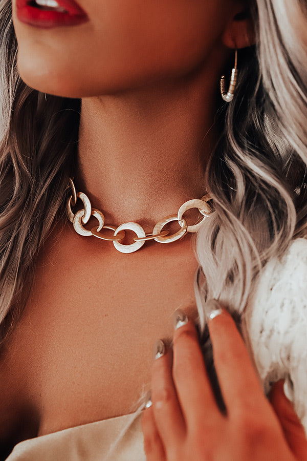 Add an effortless accent to your OOTD with this eye-catching necklace featuring large flat gold chain links!