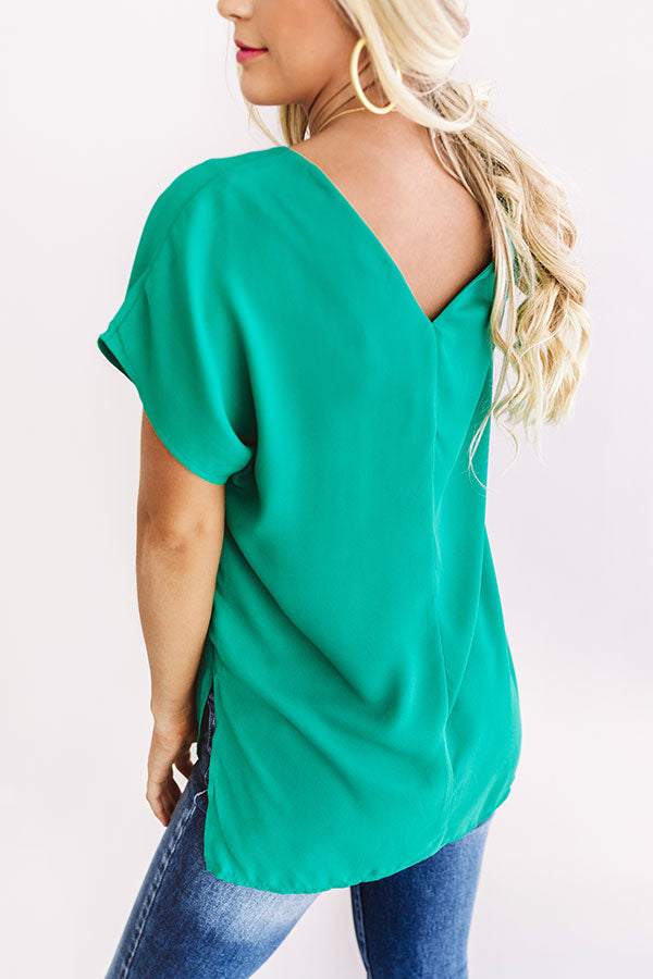 For all you ladies that have been shopping your whole life but still have nothing to wear, this basic v-neck shirt won't make you overthink your outfit! Effortlessly style this green piece with some printed pants, a black clutch, and black wedges for a classic everyday summer look! Measurements