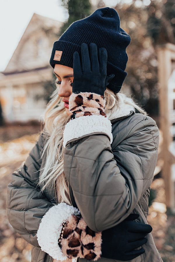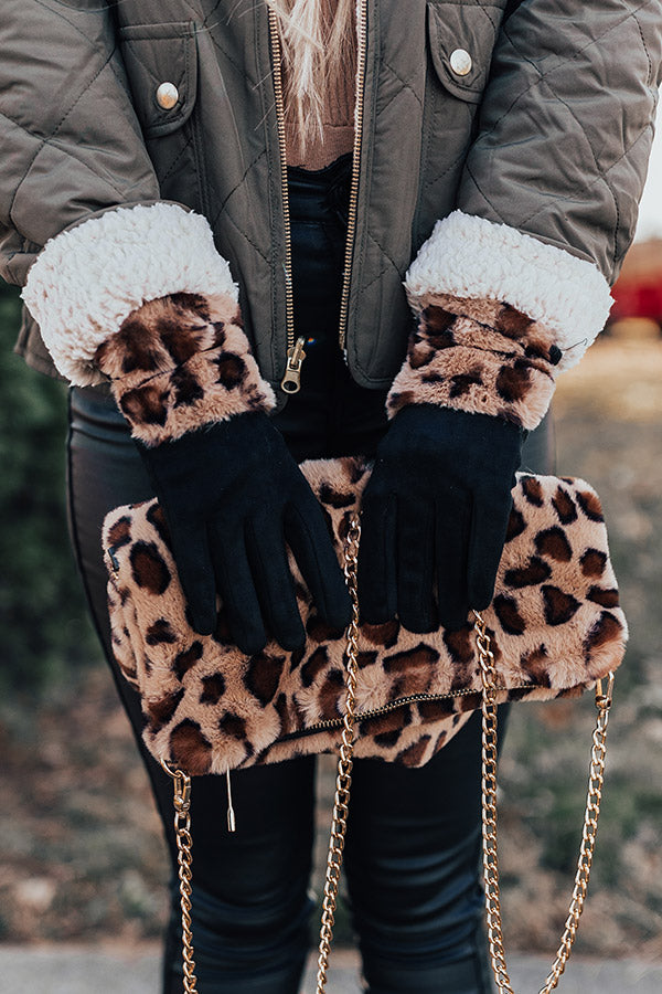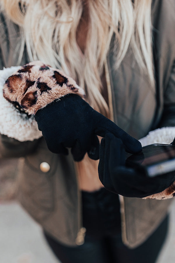 Accessorize your winter looks with with a fun pop of print with our 'Eiffel Tower Flurries' gloves featuring plush leopard print wrists and tech compatible fingertips!