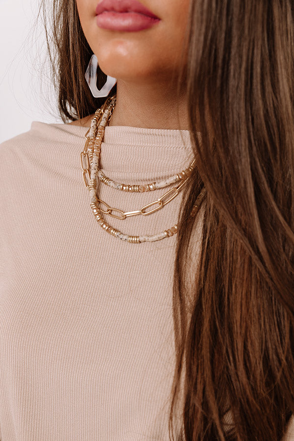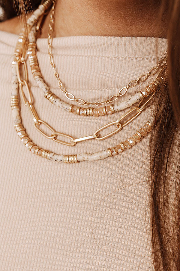 Leave a little sparkle wherever you go by accessorizing with our stunning 'Eiffel Tower' necklace featuring four layered chains adorned with champagne and gold pieces!