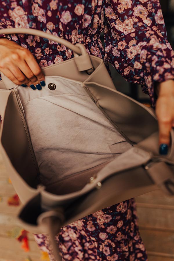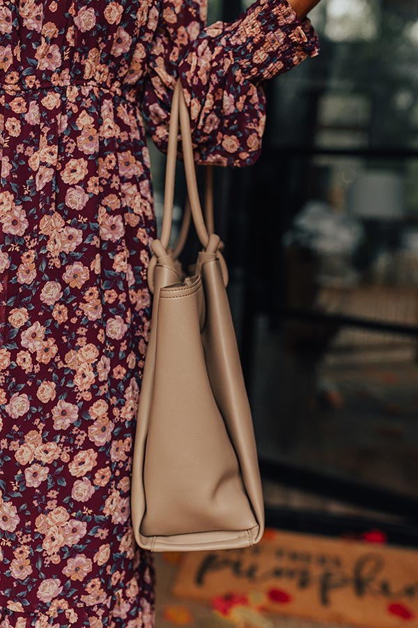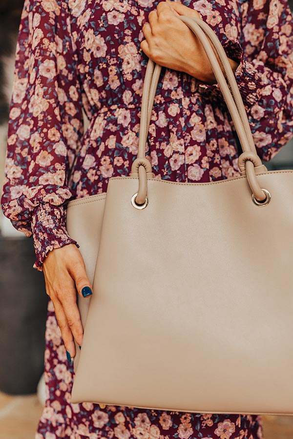 Elodie Lane Faux Leather Tote In Taupe