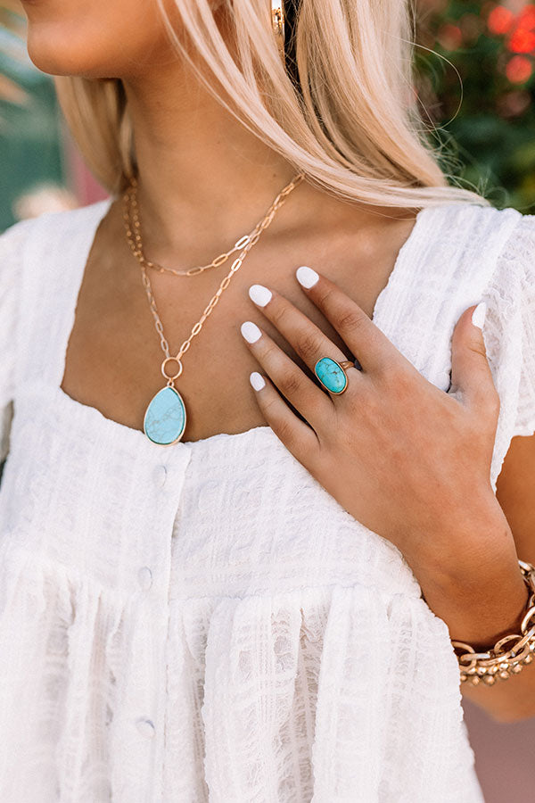 You won't find a more simple yet stylish accessory than our beautiful 'Embrace The Coast Ring' featuring an oval turquoise stone set on a gold band!