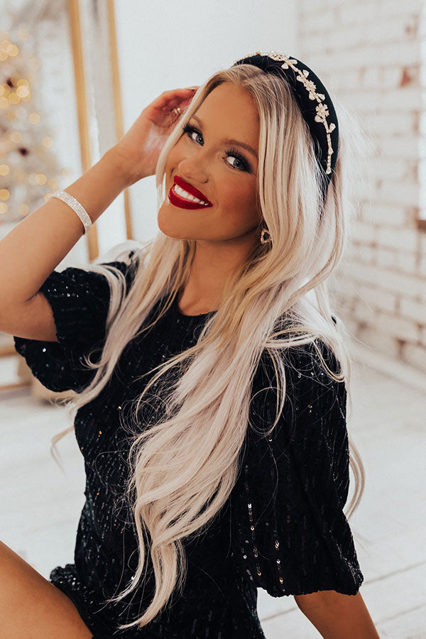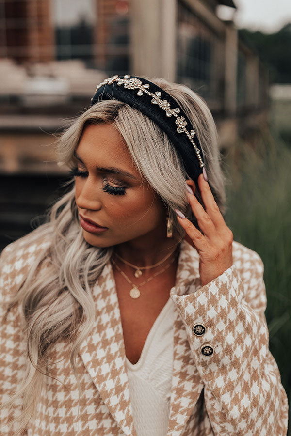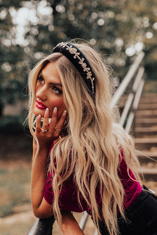 Upgrade your look effortlessly with our pretty 'Embrace The Spotlight' headband featuring black velvet material with stunning embellished detailing!