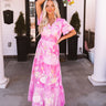 Twirl into spring with our adorable 'Enchanted Forest' maxi dress featuring lightweight and flowy pink tie dye material with intricate embroidered pastel floral detailing, a v-cut neckline, short sleeves, exposed accent seams, a wide smocked waistline, and a relaxed tiered skirt silhouette that cascades into a straight floor-length hemline!