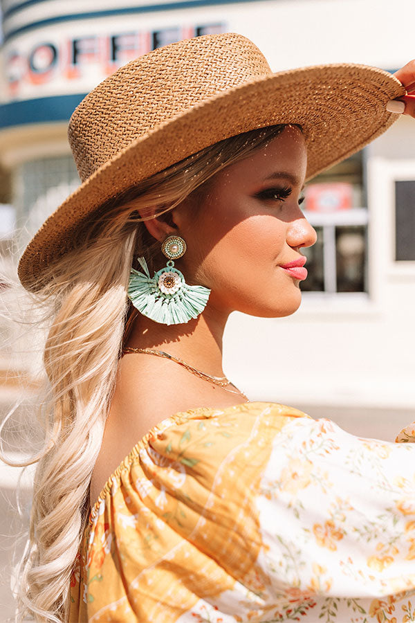 You are sure to slay all day when you accessorize with our adorable mint colored "Endless Dreaming" statement earrings featuring gold beaded circle studs and woven accent fans!