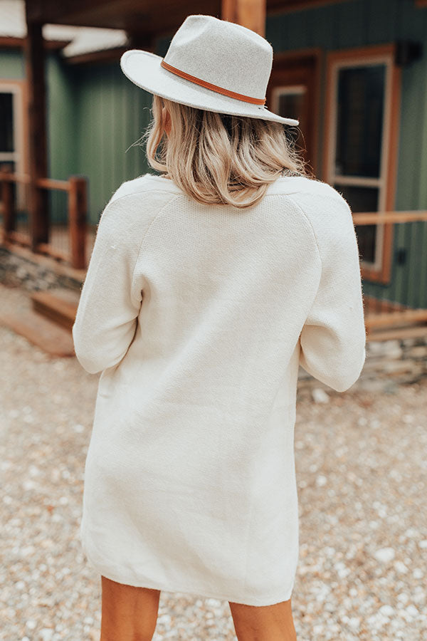 There is no better way to achieve "endless layers" than by wearing this adorable cream colored cardigan featuring soft and warm lightweight tight knit material, long loose sleeves, a flap collar, and a relaxed open front silhouette that falls into a straight mid-thigh length hemline!