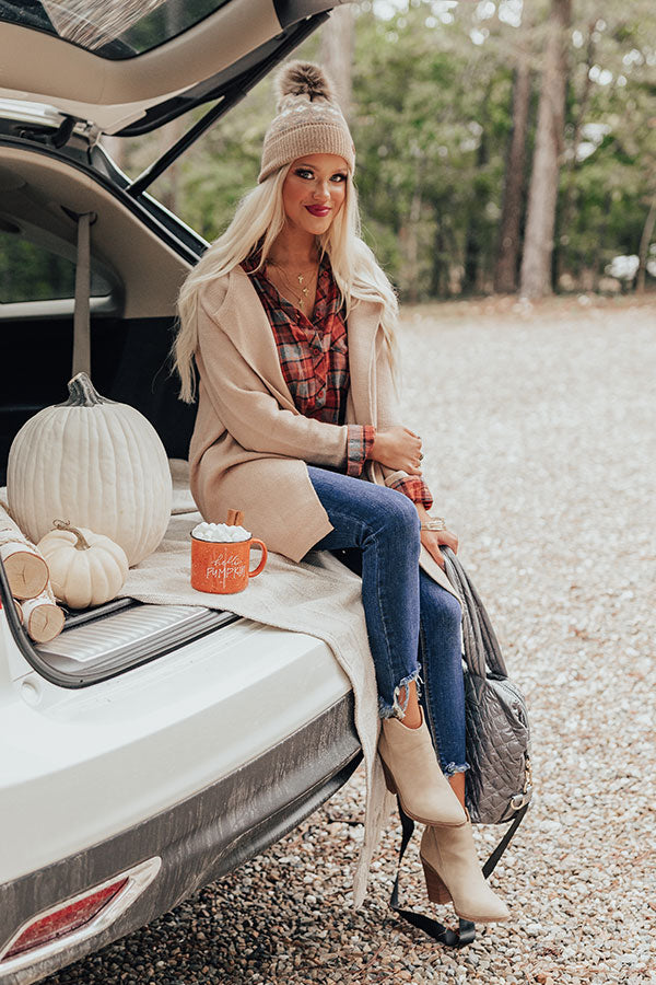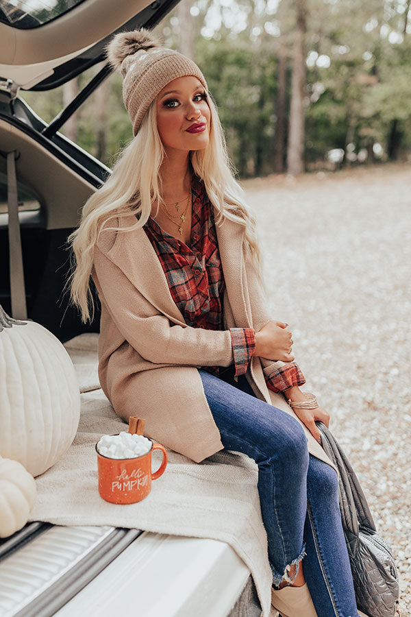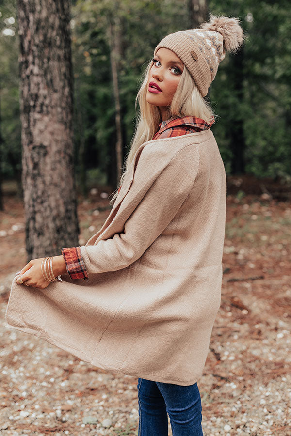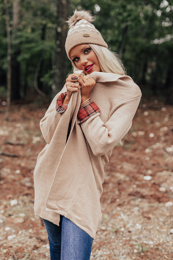 There is no better way to achieve "endless layers" than by wearing this adorable iced latte colored cardigan featuring soft and warm lightweight tight knit material, long loose sleeves, a flap collar, and a relaxed open front silhouette that falls into a straight mid-thigh length hemline! Measurements