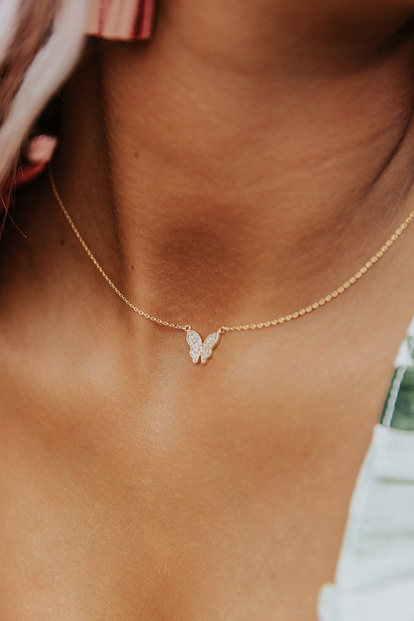 People are sure to praise you endlessly when you accessorize with this adorable necklace featuring a dainty gold chain with a small rhinestone butterfly charm!