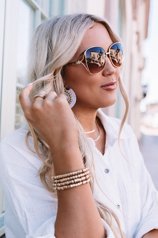 Stay protected from the endless summer sunshine with these trendy sunnies featuring gold square shaped framed and brown tinted lenses!