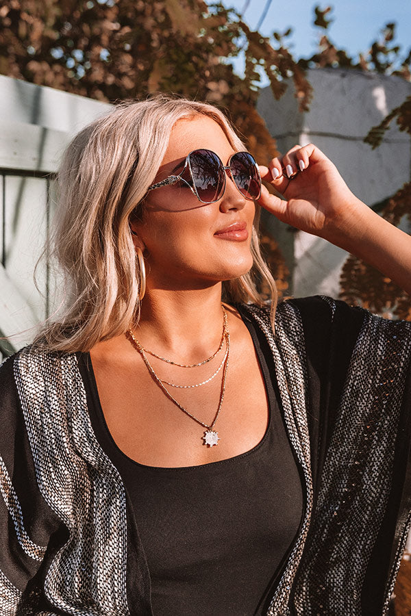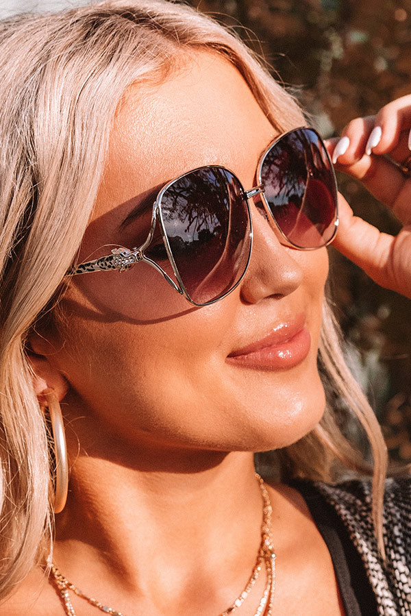 Stay protected from the endless summer sunshine with these trendy sunnies featuring silver square shaped framed and dark tinted lenses!