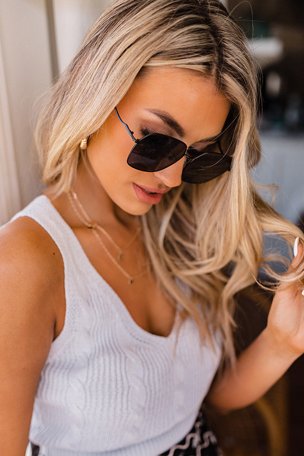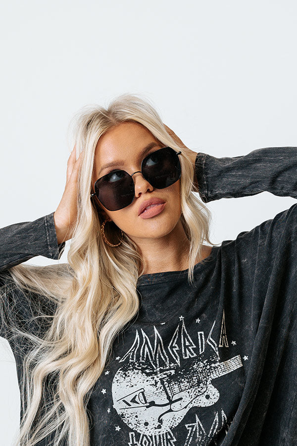 You will look endlessly fabulous when you complete your look with these chic sunnies featuring thin black square wire frames and dark tinted lenses!