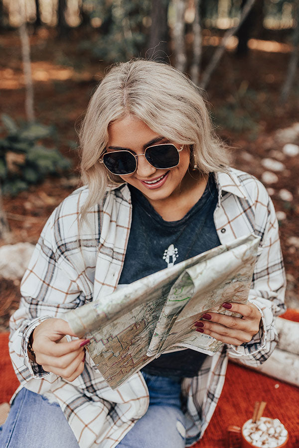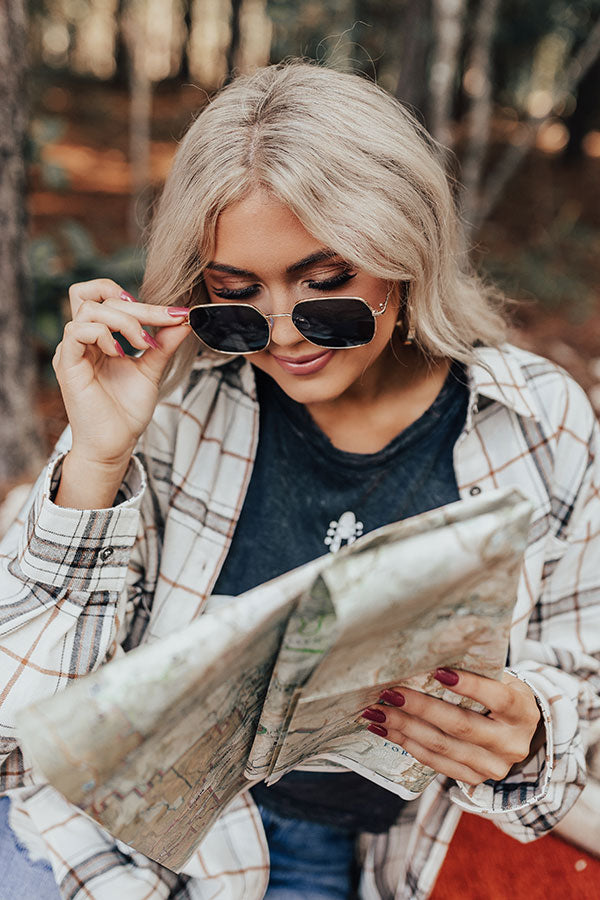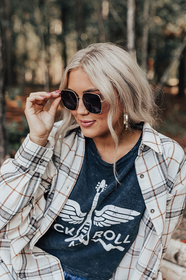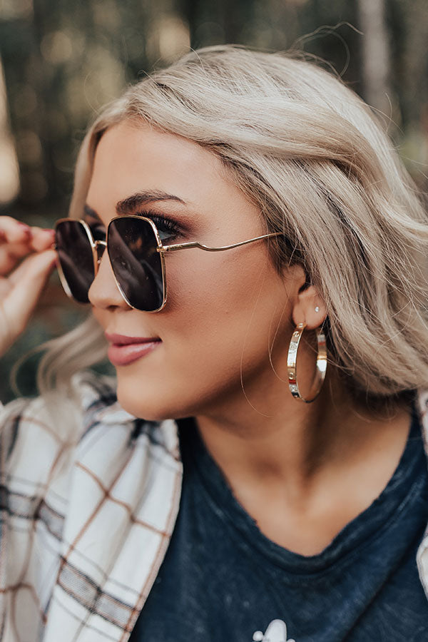 You will look endlessly fabulous when you complete your look with these chic sunnies featuring thin gold square wire frames and dark tinted lenses!