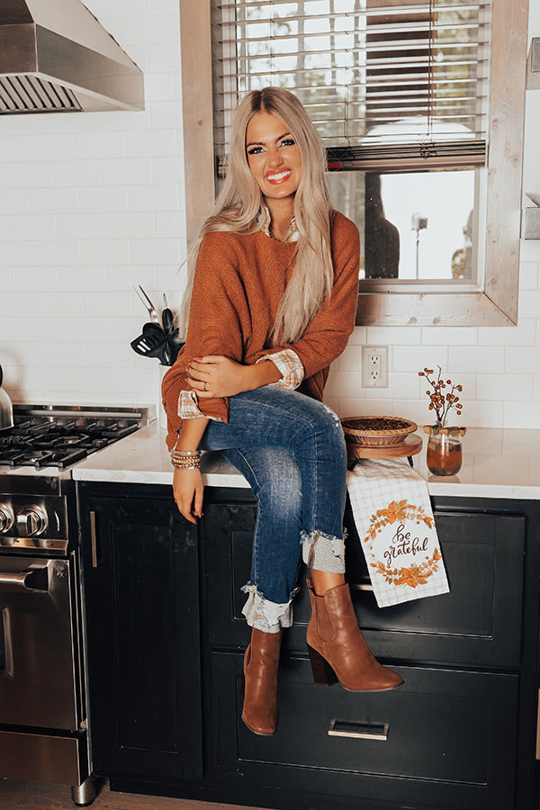 Welcome sweater weather effortlessly in our adorable rust colored 'Equinox' top featuring soft knit material, a rounded neckline, loose 3/4-length sleeves with thick cuffs, and a slouched silhouette that falls into a straight hemline!