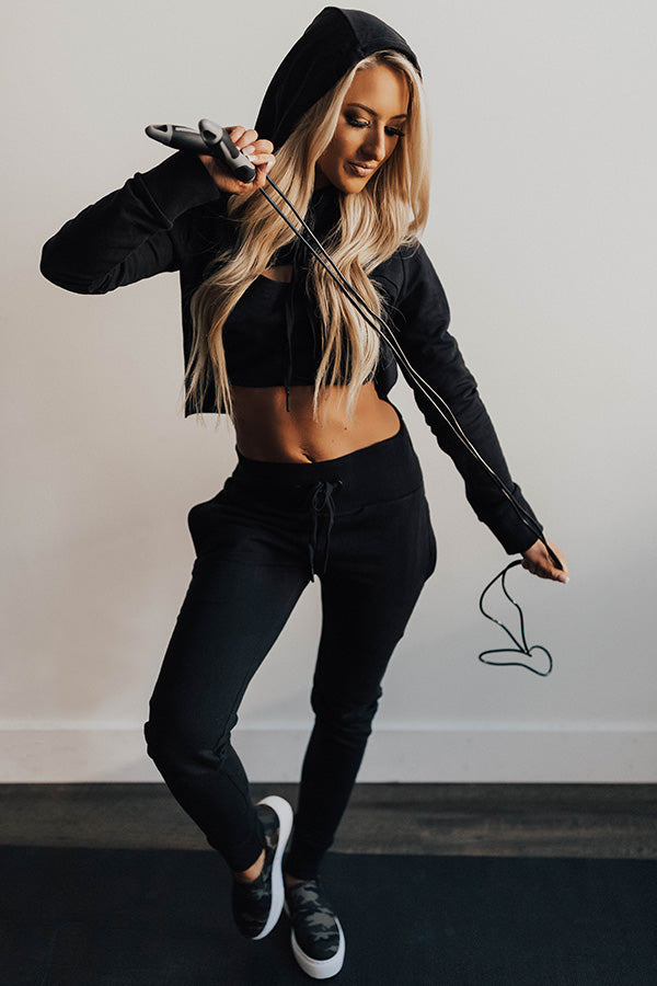 - Complete your look with the "Raise The Bar Crop Hoodie!"