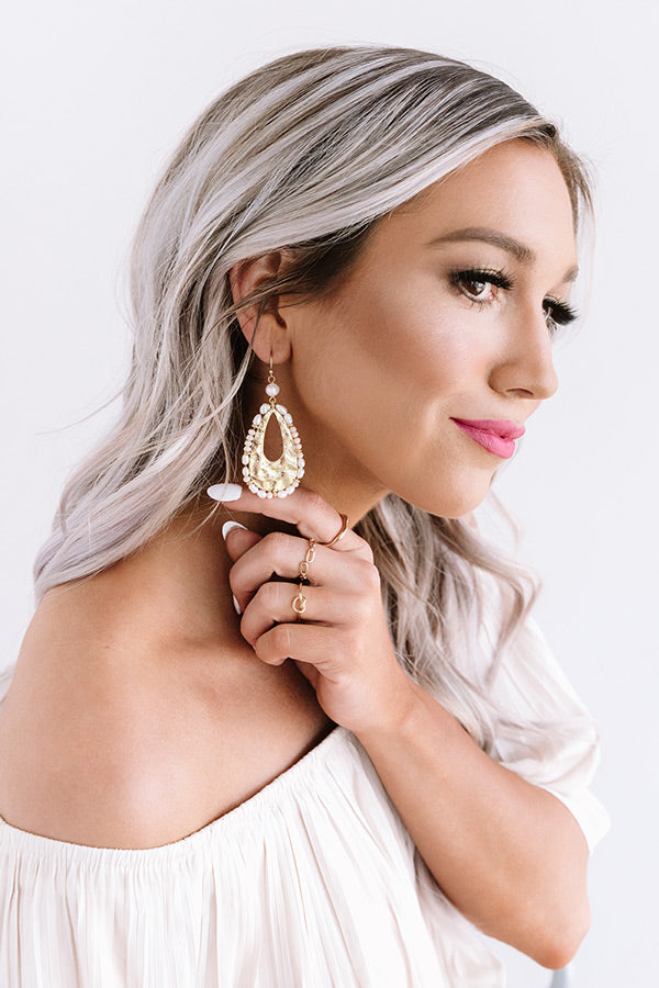 Arrive in style by accessorizing with our adorable "European Vibes" statement earrings featuring dangling tear drops with faux pearl trim accents!
