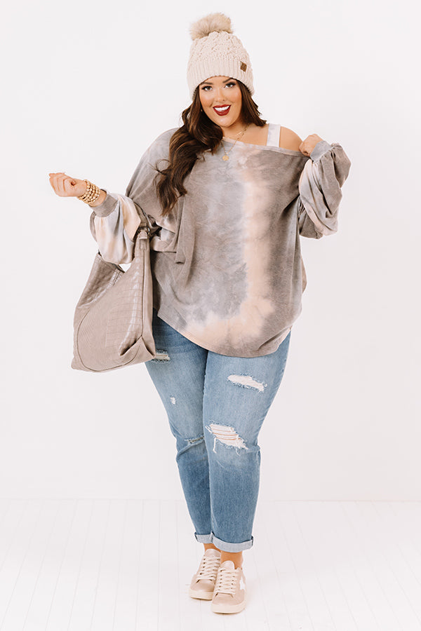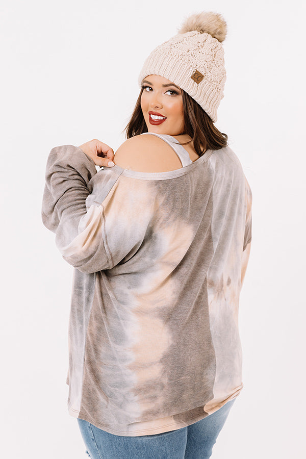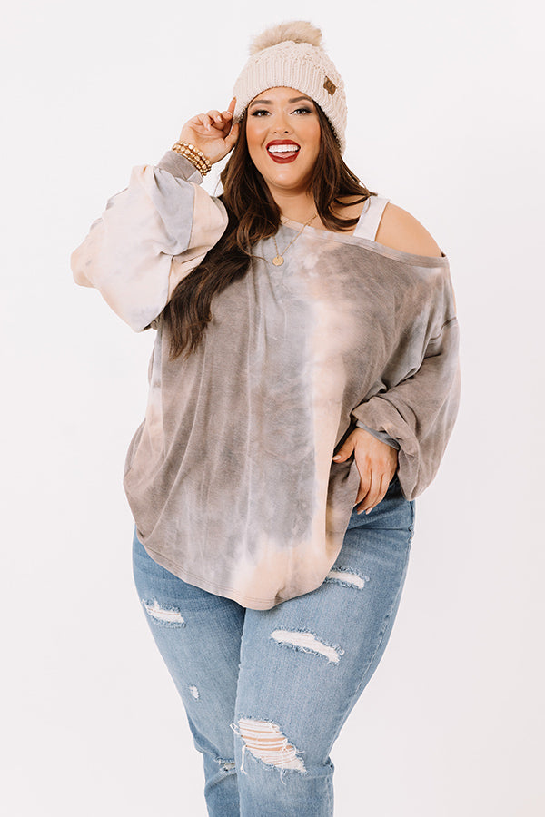 Plus Size - Chill all evening in comfort with this adorable sweater featuring soft lightweight material patterned with a trendy slate and neutral hued tie dye, a diagonal neckline with a single 1-inch shoulder strap, long oversized sleeves with fitted cuffs and a cold shoulder cutout on the left side, and a slouched silhouette that ends in a straight hemline!