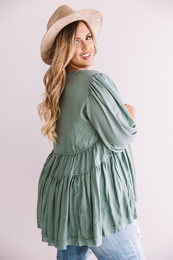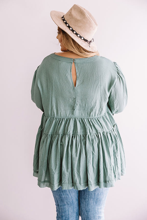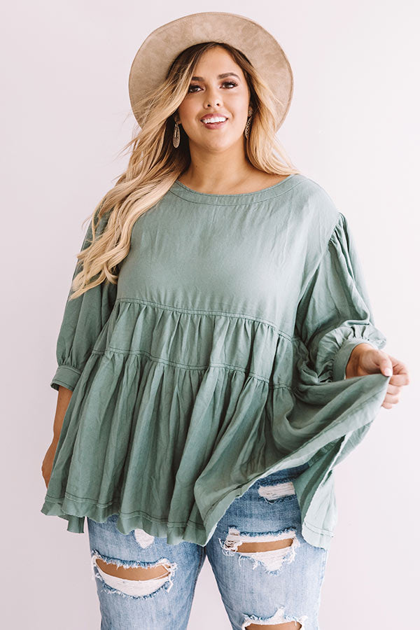 Plus Size - This pear colored top will bring you "everlasting happiness" with its lightweight material, high rounded neckline, loose 3/4 length bishop sleeves with fitted buttoned cuffs, a keyhole accented upper back with a button closure, and a relaxed tiered babydoll silhouette that falls into an unfinished, raw-edged hemline! We have styled this cute piece with some distressed ankle skinnies, snake print booties, and a neutral fringe crossbody and faux suede hat, but you can also wear it with some charcoal flares and "The Seraphina Faux Leather Wedge in Grey!" Measurements