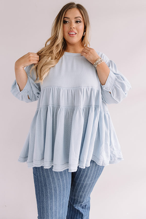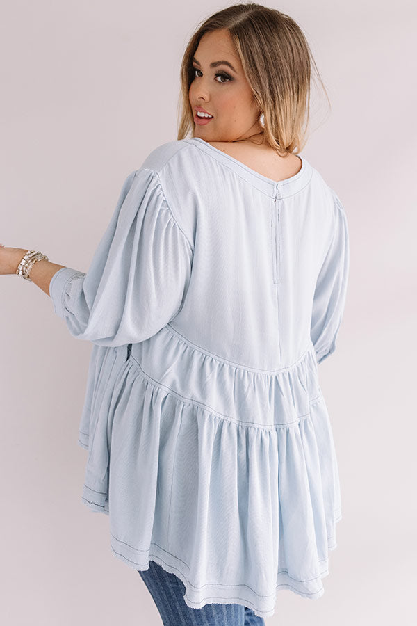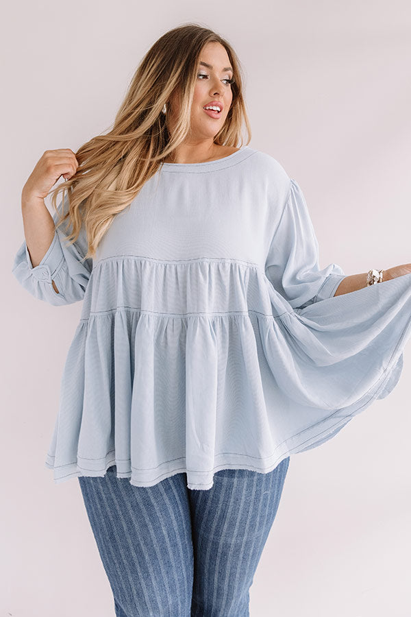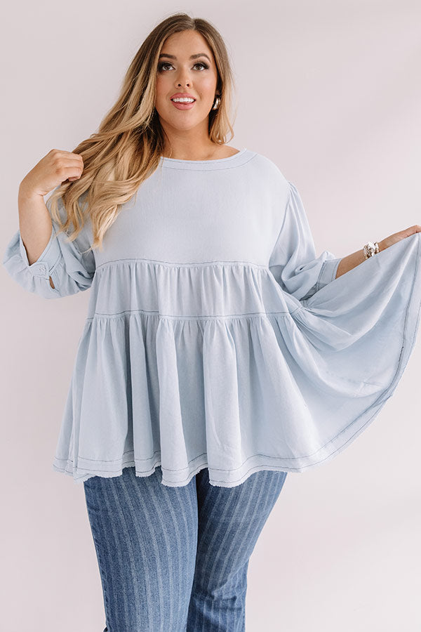 Everlasting Happiness Babydoll Top In Sky Blue Curves