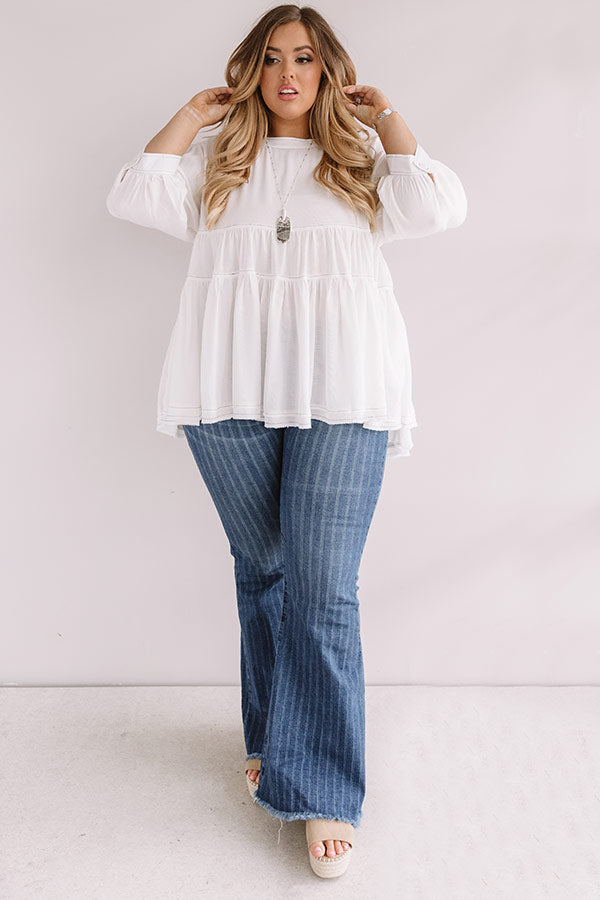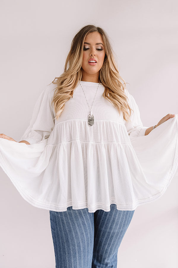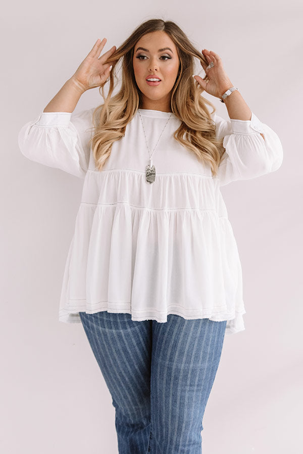 Plus Size - This adorable white top will bring you "everlasting happiness" with its lightweight material, high rounded neckline, 3/4 length bubble sleeves with buttoned cuffs, a keyhole accented upper back with a button closure, and a relaxed tiered babydoll silhouette that falls into an uneven hemline! We have styled this cute piece with some pin stripe flares and neutral wedges, but you can also pair it with some distressed black skinnies, "The Kennedy Wedge in Snake Print," our "Dream Destination Snake Print Tote," and our "Twist And Shout Snake Print Headband" for an eye-catching transitional OOTD! Measurements