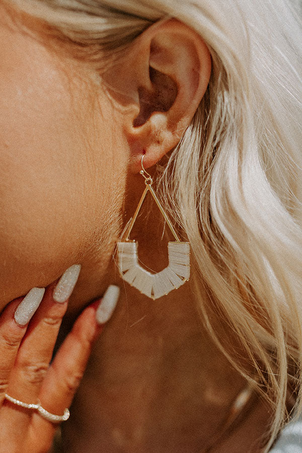 Accessorize effortlessly with these adorable earrings featuring pointed gold teardrop hoops with ivory hued woven detailing!