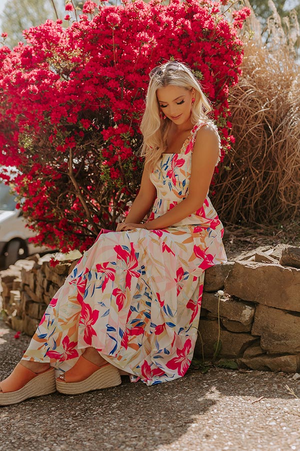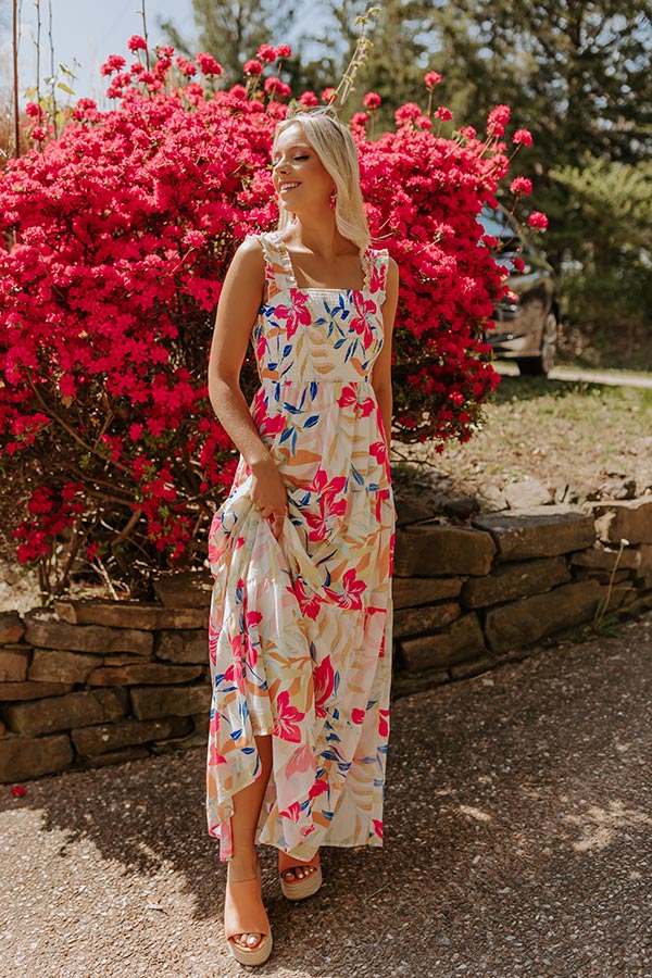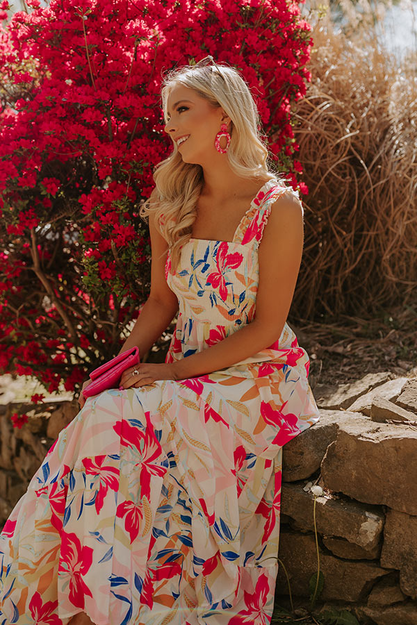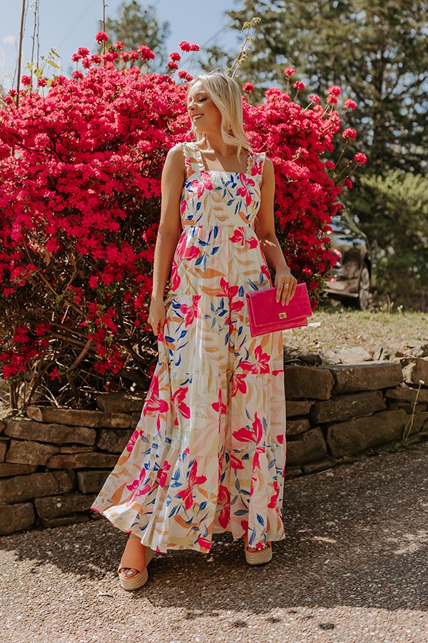 Live your life in color in our striking 'Every Effort' maxi dress featuring lightweight breezy material patterned with a stunning hot pink, royal blue, and a vibrant floral print, a smocked bodice with a square neckline, wide subtly ruffled sleeveless shoulder straps, and a relaxed silhouette that cascades into a straight ankle-length hemline! on products