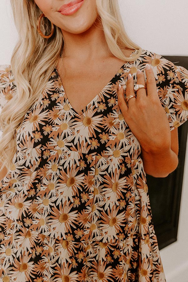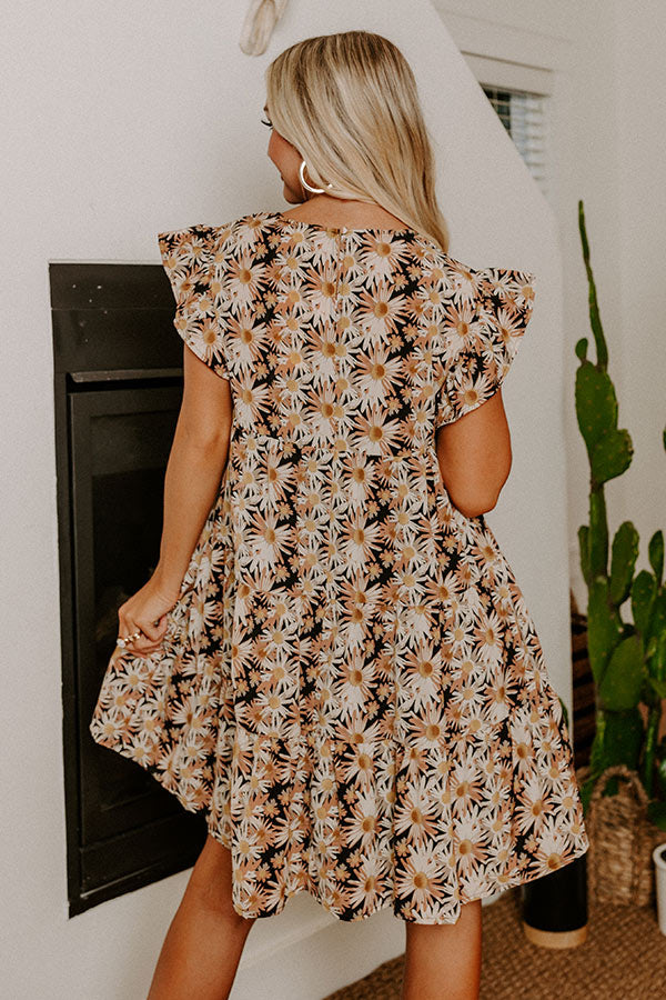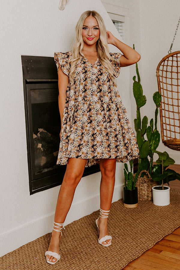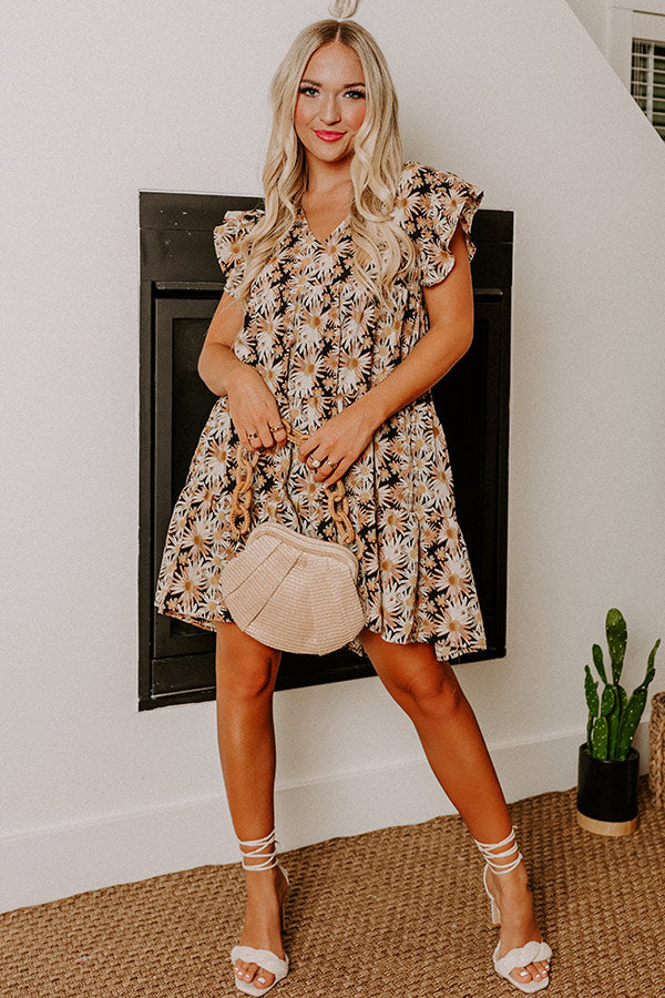 You will look like a boho fashion icon when you arrive in our pretty black 'Everyday Beautiful' shift dress featuring lightweight material patterned with a pretty camel and ivory hued floral print, a v-cut neckline, ruffled short sleeves, a keyhole accented upper back with a button closure, and a relaxed silhouette that falls into a straight mid-thigh length hemline!