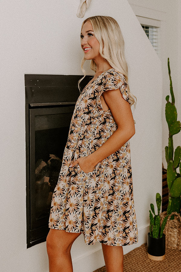Everyday Beautiful Floral Shift Dress In Black