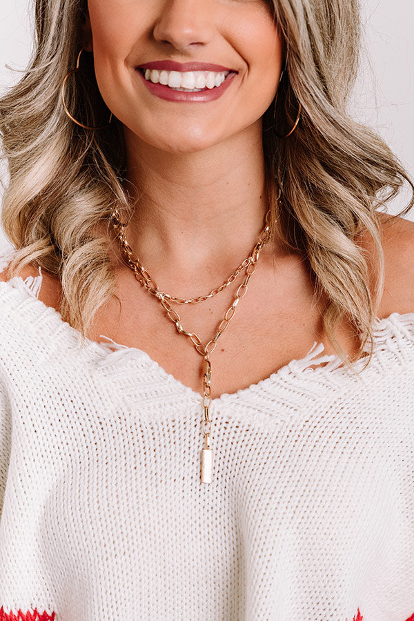 We have no doubt you will want to include this gorgeous necklace into your everyday jewelry rotation with its two layered large gold link chains and vertical gold pendant!