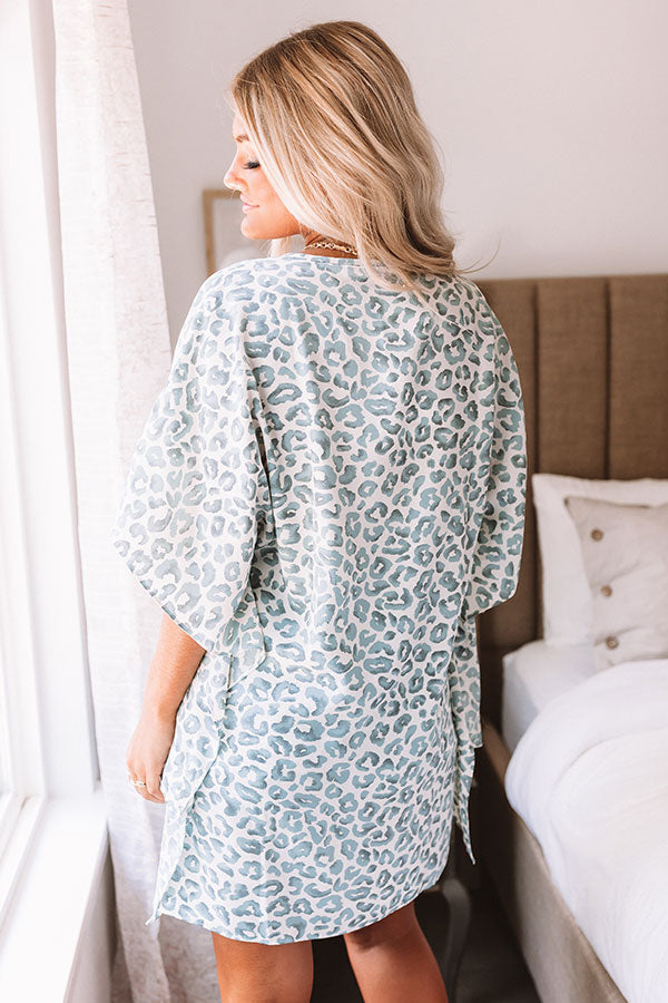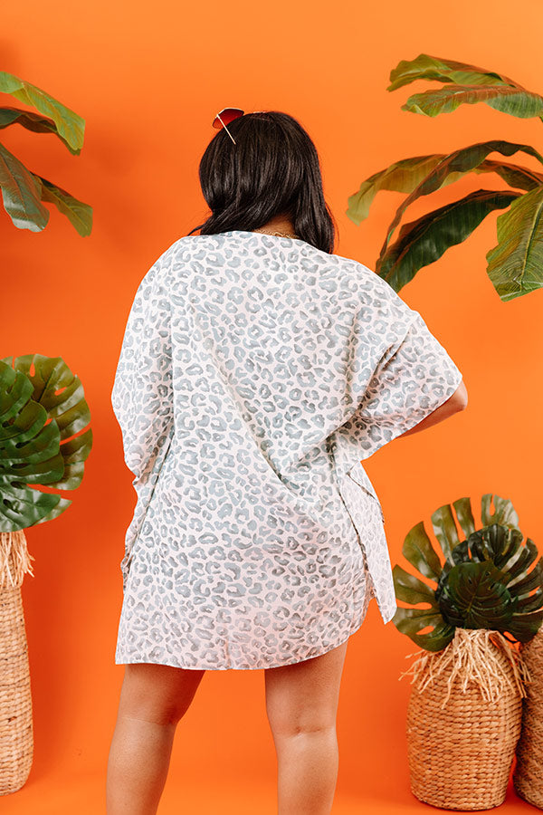We have no doubt you will want to wear our adorable 'Everyday Prints' shift tunic on repeat with its lightweight flowy material, grey/blue hued leopard print, a v-cut neckline with a tie closure, oversized half sleeves, and an ultra draped silhouette that cascades into a straight upper-thigh length high/low hemline with accent side slits!