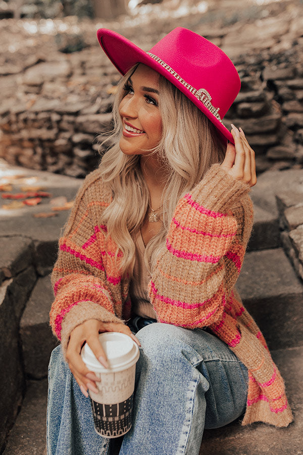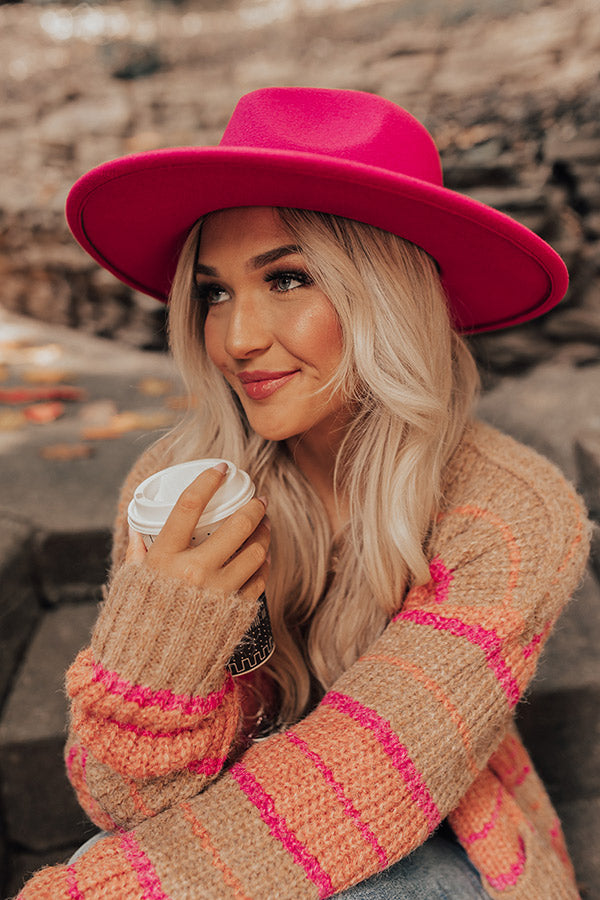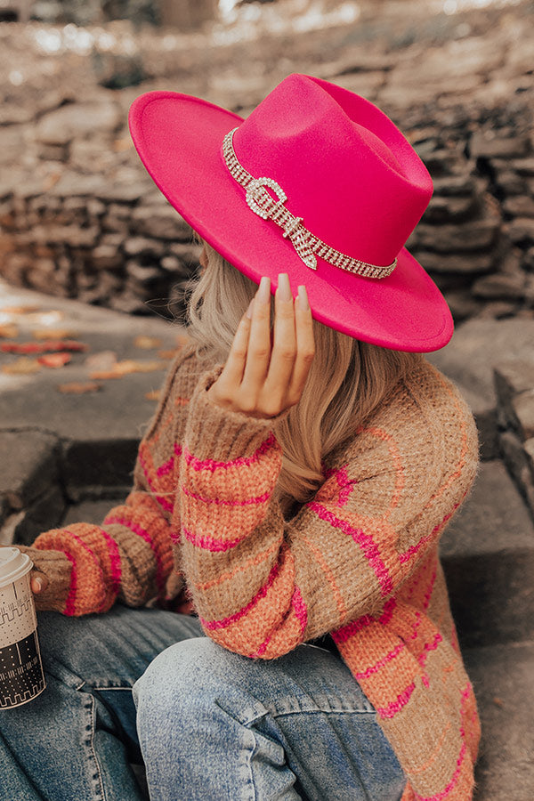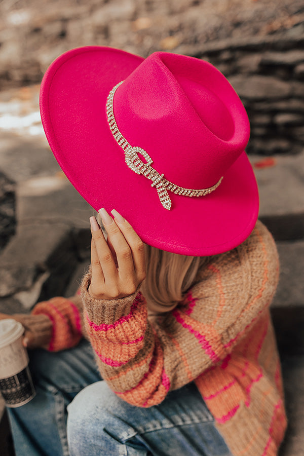 Add a glamorous finish to your look with our glitzy fuchsia 'Everyday Rumors' fedora featuring lightweight felt material, a stiff 3.5-inch brim, and a rhinestone buckle accent band!