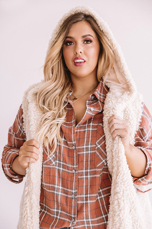 Plus Size - If you just can't wait for chillier weather and "everything pumpkin spice" then this cream colored vest is perfect for you with its soft sherpa material, hooded back, hidden side pockets, and open front silhouette that cascades into a straight hemline! This piece can be styled with just about any type of bottoms from corduroy flares, distressed skinnies, and skirts and with your fave flannel, sweater, basic long sleeve, or blouse for a variety of fall looks that are sure to have everyone FALLing in love with your style! Measurements