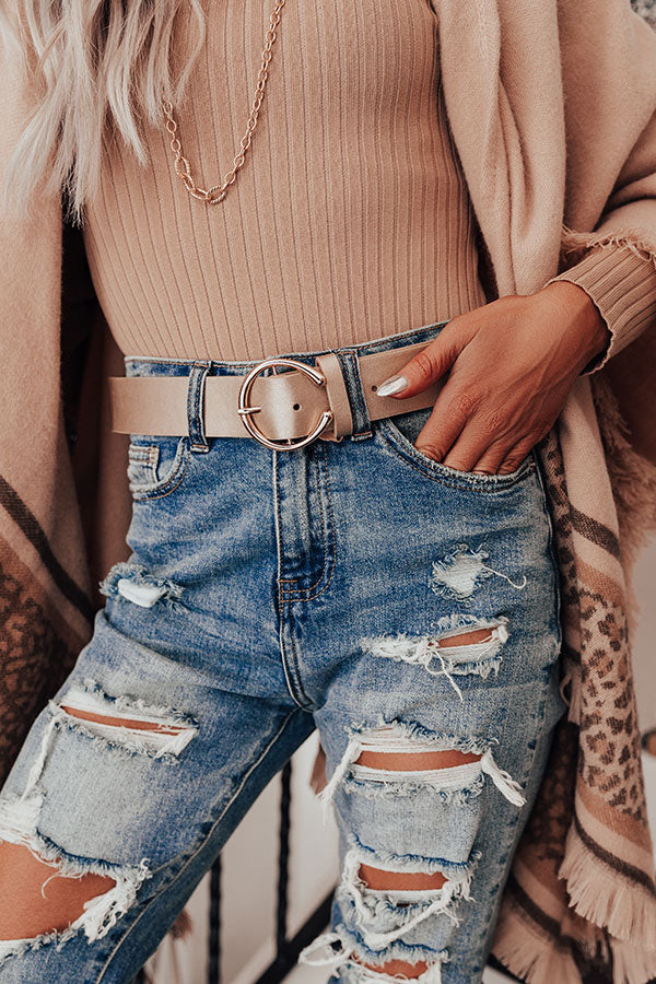 Your OOTD is guaranteed to look exceptional when you wear this adorable belt featuring a wide gold strap and a large circle rose gold buckle!