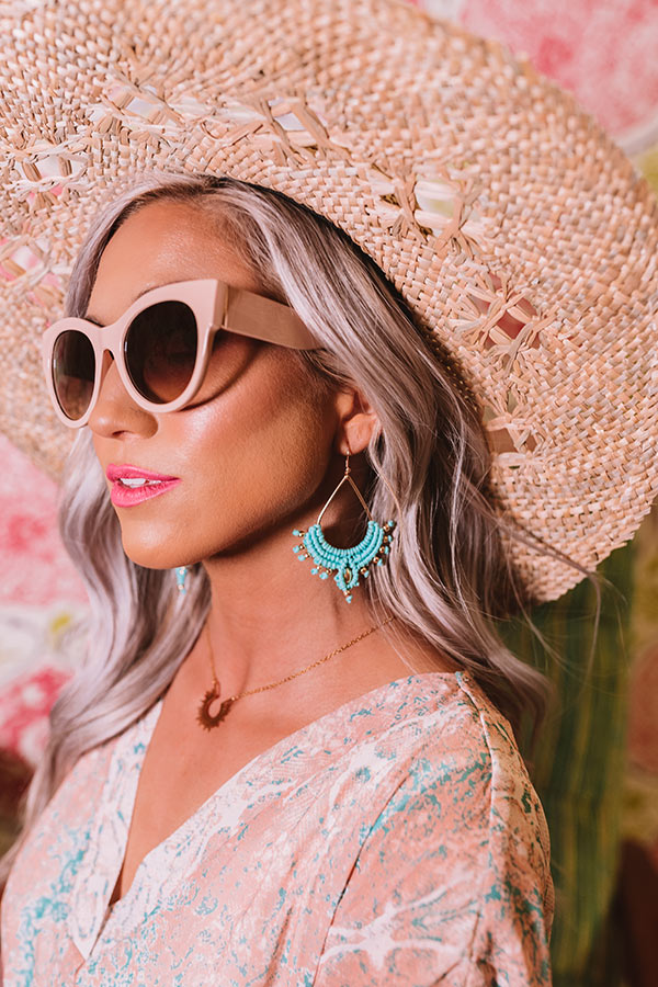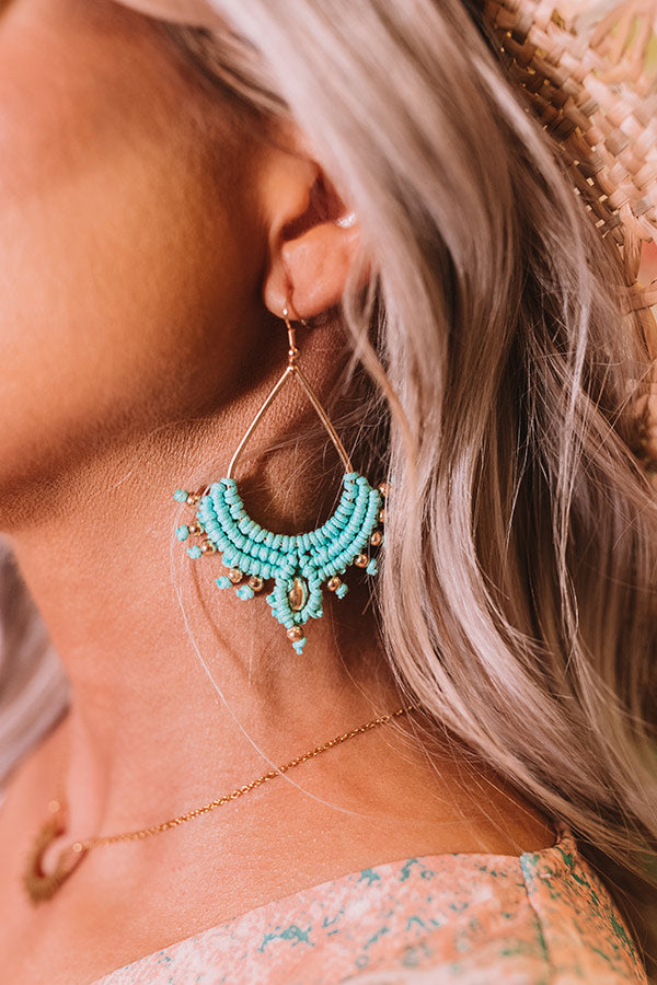 Get paradise ready by accessorizing with our adorable "Excited For Paradise" statement earrings featuring dangling gold teardrops with intricately woven turquoise detailing and gold beads!