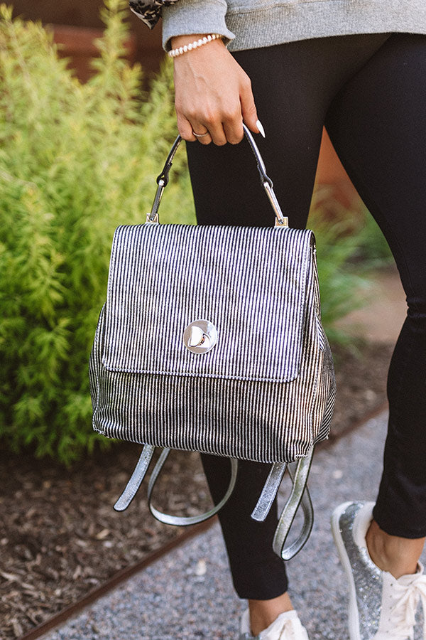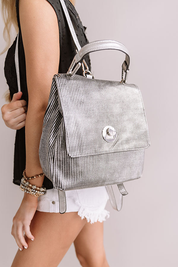 Exciting Sights Metallic Pinstripe Backpack in Silver