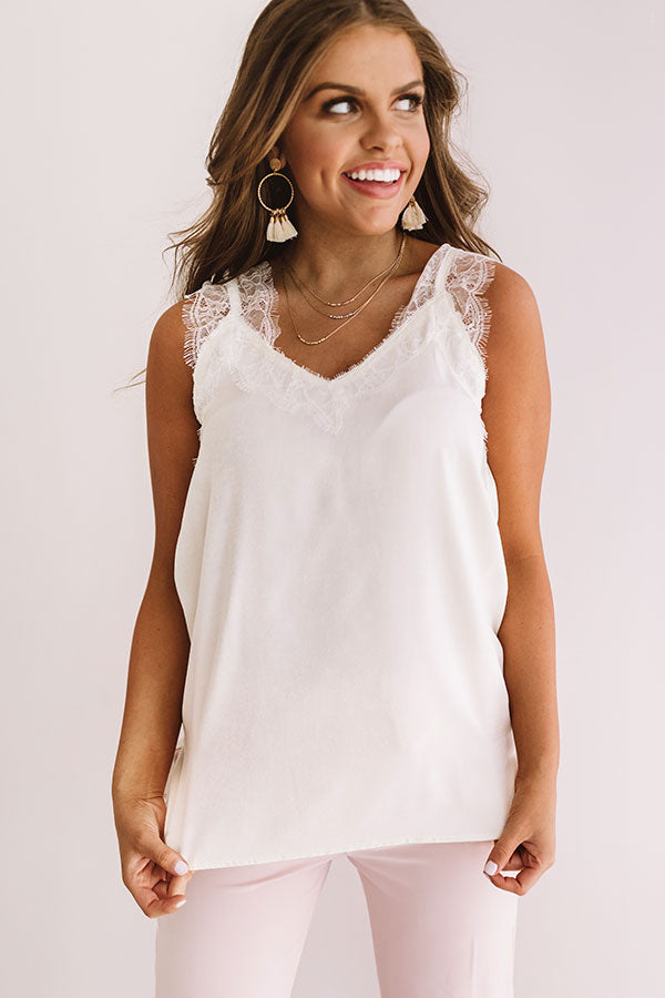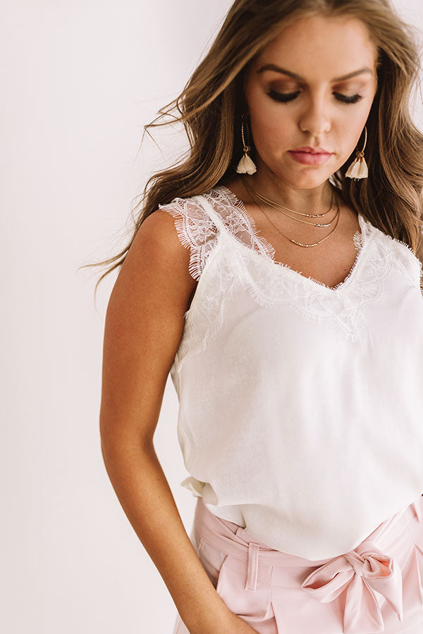 "Express yourself" in this cream shift tank with shoulder lace detailing and silky smooth fabric! The neutrality of this top gives you the versatility to explore a wide variety of styling options like with leopard trousers or our simple "Rock And Roll Frayed Mini Skirt," with trendy sneakers or colored wedges like our emerald "Nicolette Faux Suede Espadrille," and with neutral accessories or bright ones like our "Tropical Chic Clutch" and "Mojitos In Mexico Earrings in Royal Blue!" Measurements