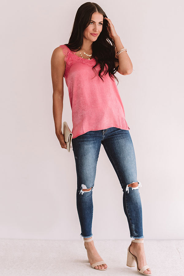 Express Yourself Lace Shift Tank in Pink