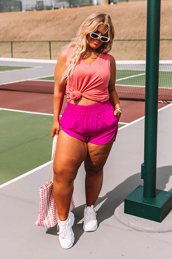 Extra Cardio High Waist Windbreaker Shorts In Hot Pink Curves