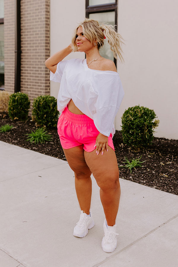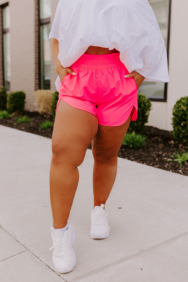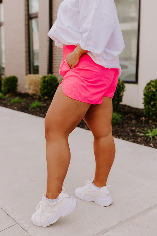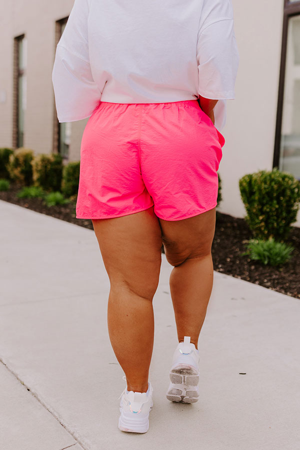 Extra Cardio High Waist Windbreaker Shorts In Neon Pink Curves