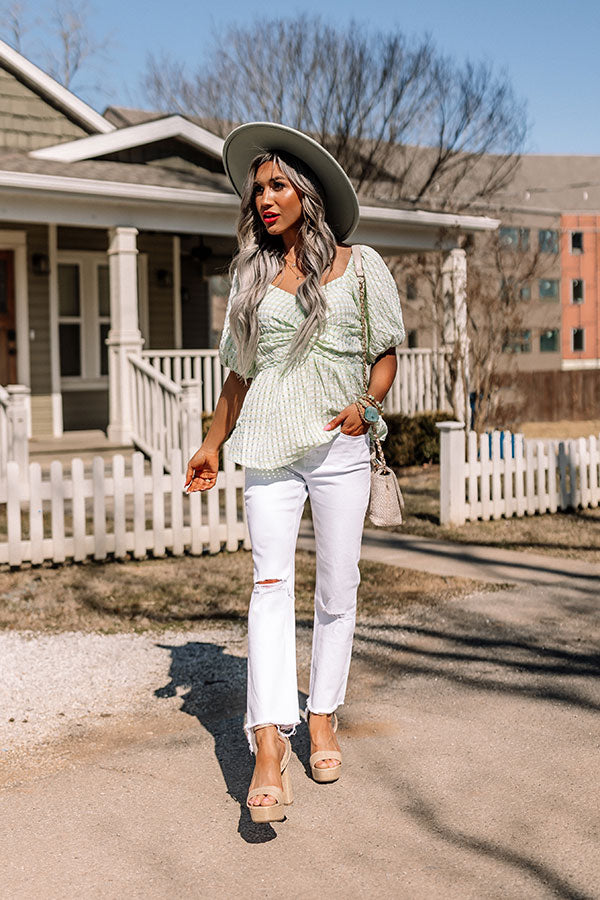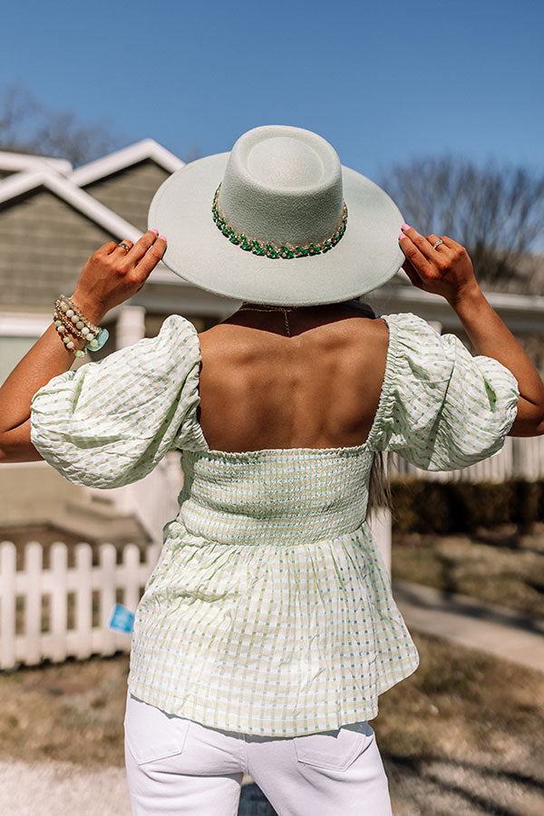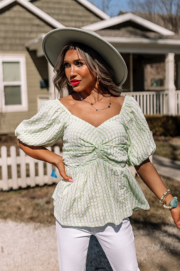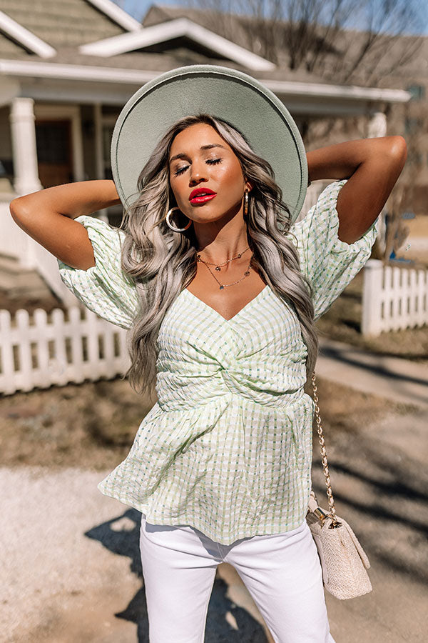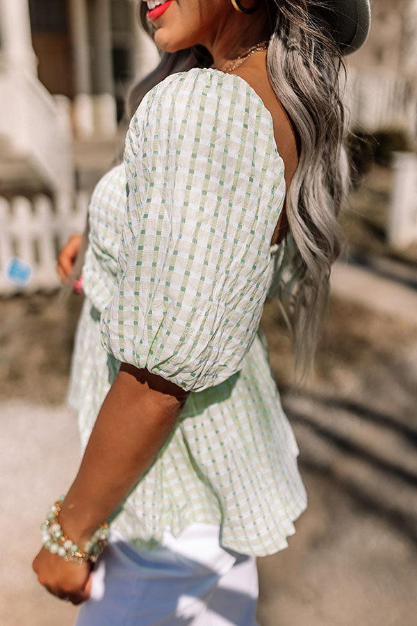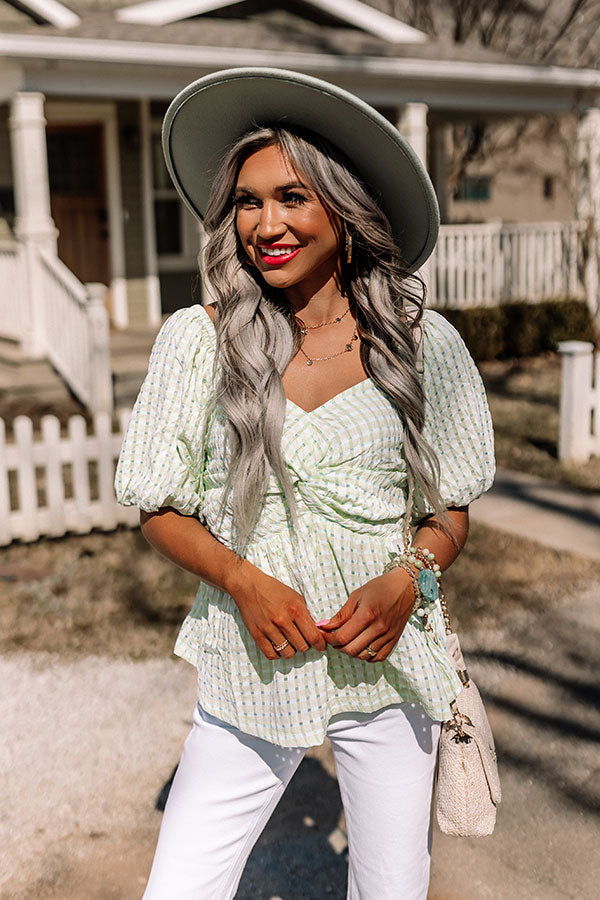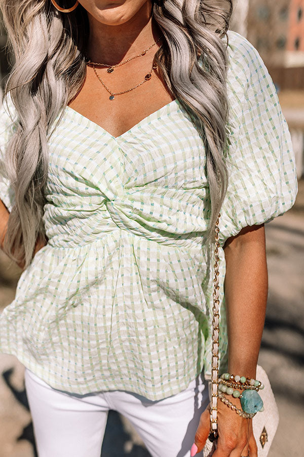 Show up and show out in our adorable 'Fabulous Time' top featuring lightweight material patterned with a small lime colored gingham print, a v-cut neckline, short puff sleeves, a square back with smocked detailing, and a flattering babydoll silhouette that ends in a straight hemline!