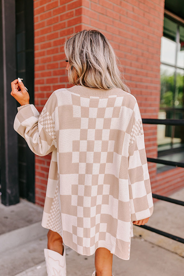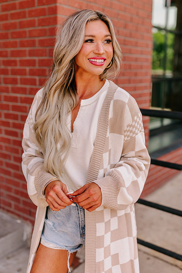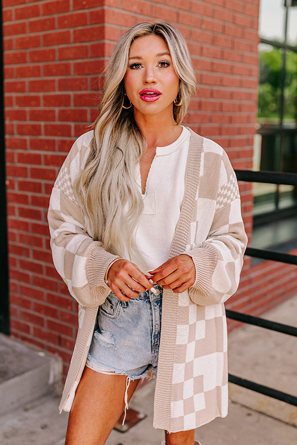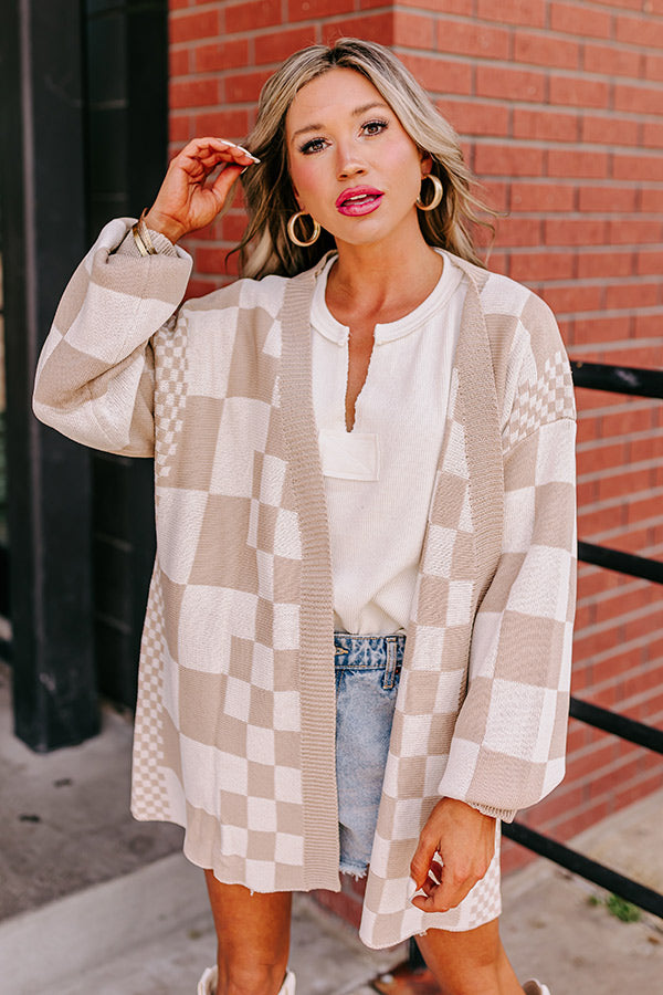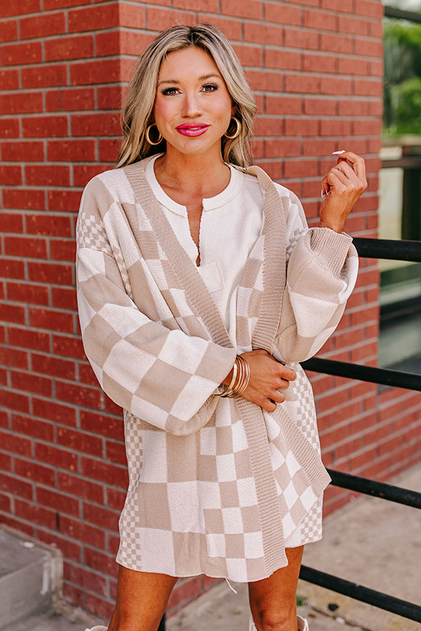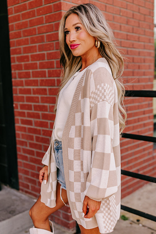 Fact or Fiction Checkered Cardigan in Warm Taupe