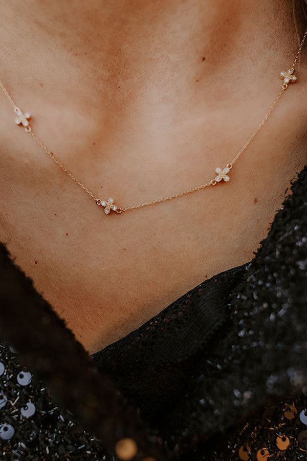 - Let your faith shine with this sweet necklace! With its shimmering rhinestone crosses, it's perfect for styling your Sunday's best.