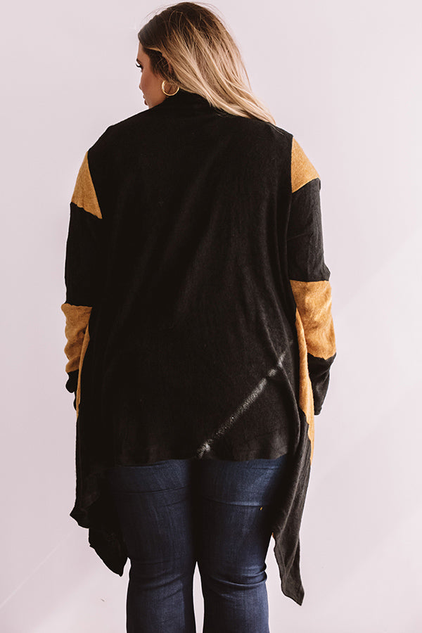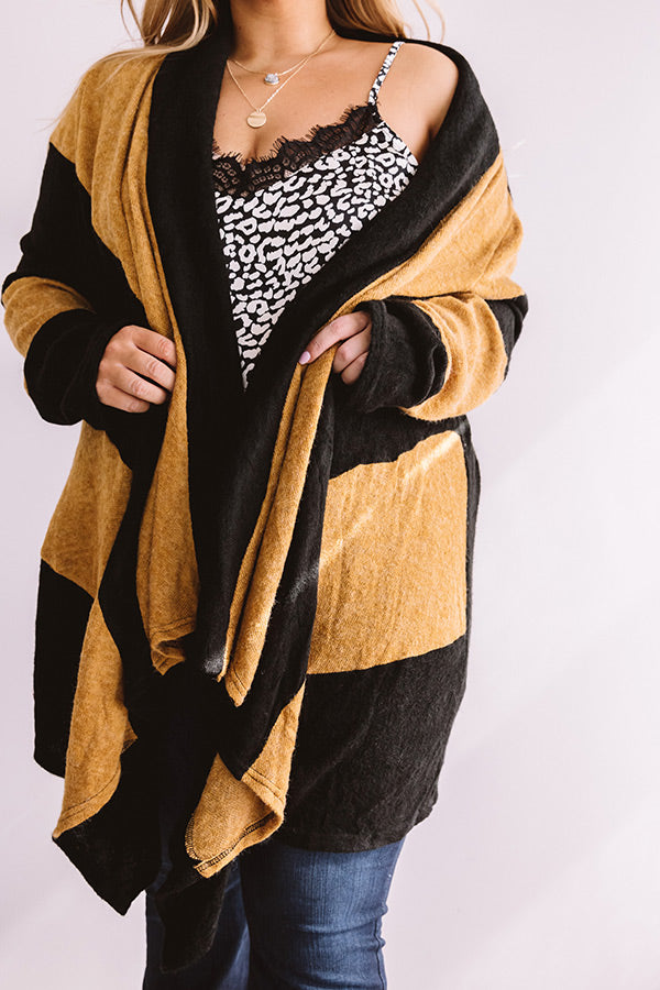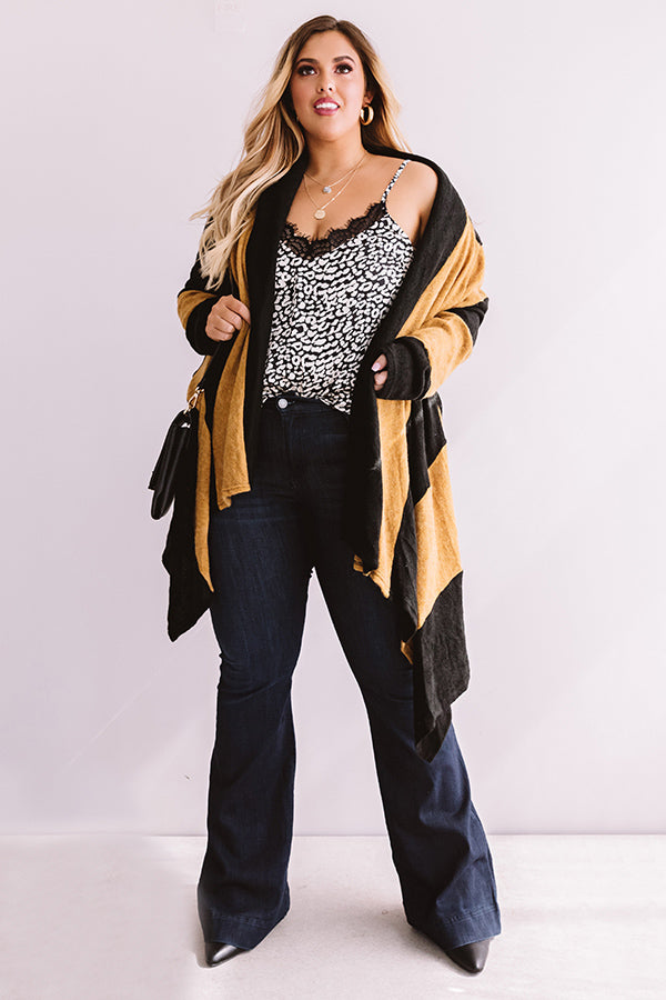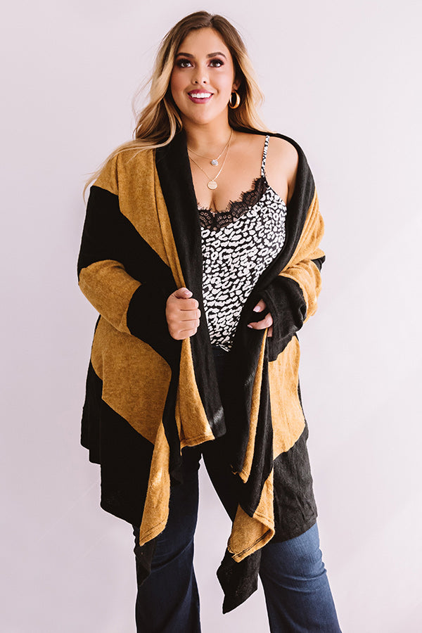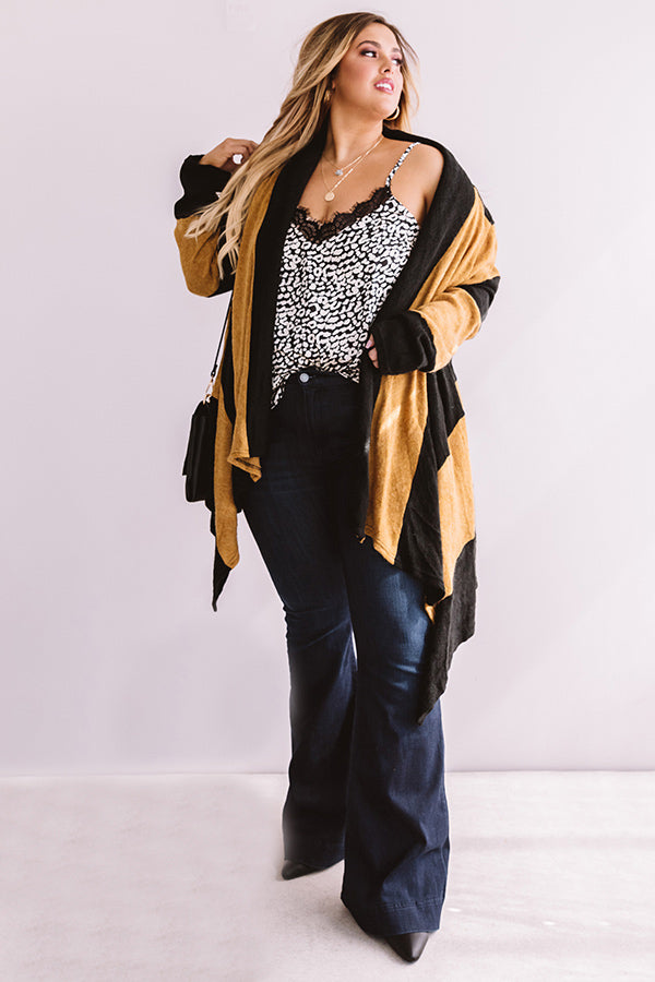 Plus Size - Stay protected from that chilly "fall breeze" with this warm cardigan featuring soft lightweight tight knit material with subtle ribbed texturing, wide neutral and black color block stripes, long loose sleeves, and a draped open front silhouette that falls into an uneven mid-thigh length hemline! You can style this versatile piece with just about anything from a basic tank to a sweater, jeans to skirts or dresses, booties to wedges or sandals, clutches to totes, and hats to earrings! Measurements