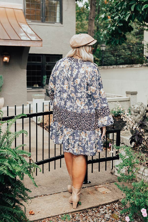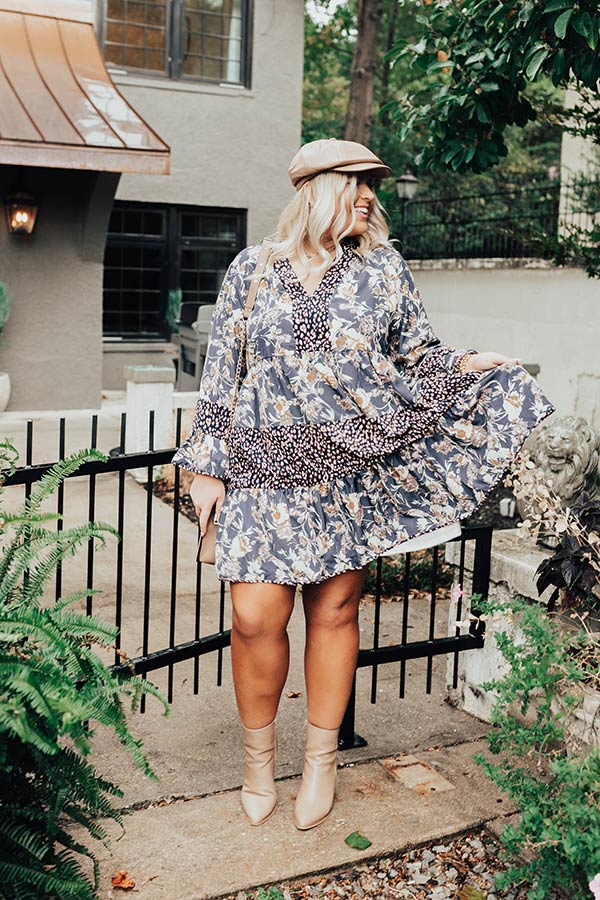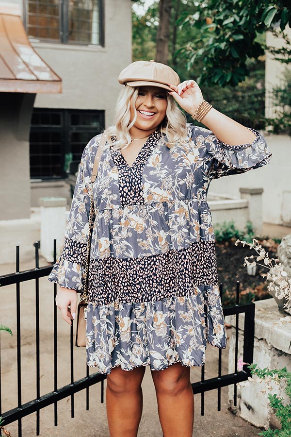 Fall Delight Floral Babydoll Dress In Navy Curves