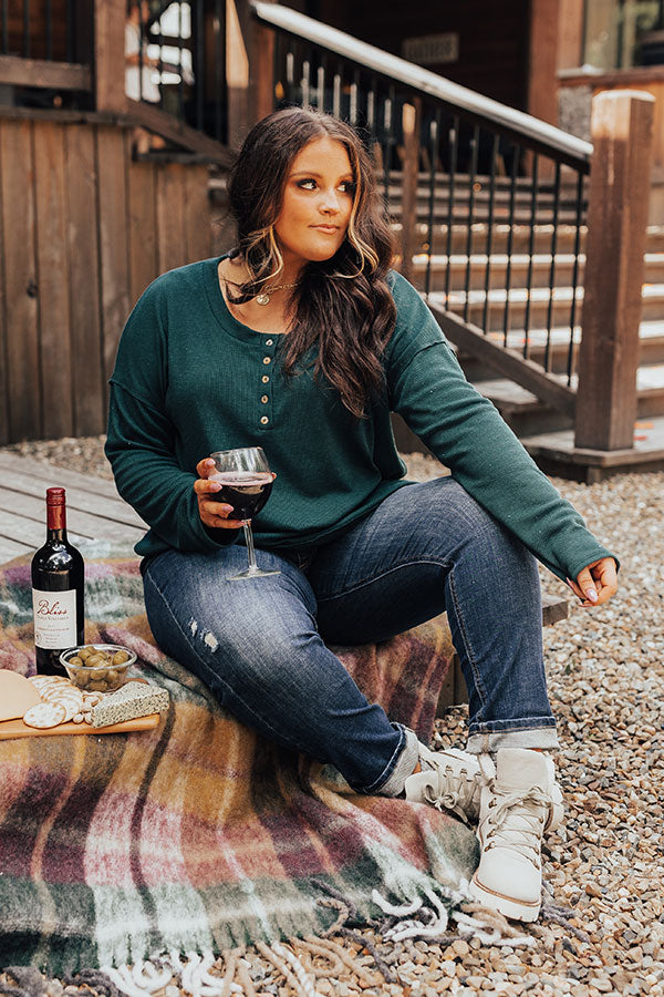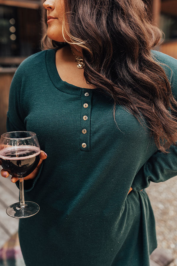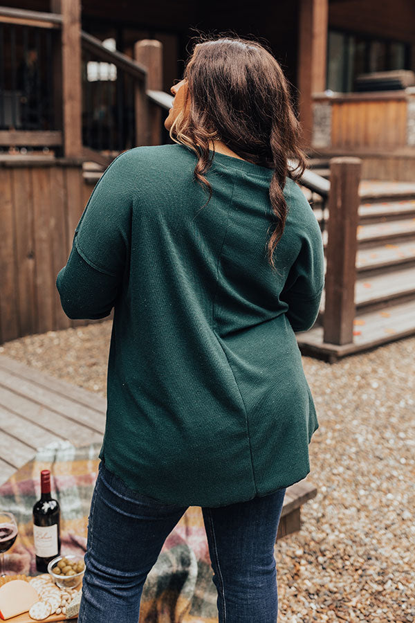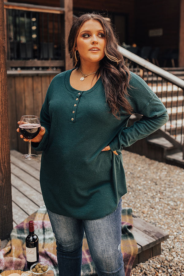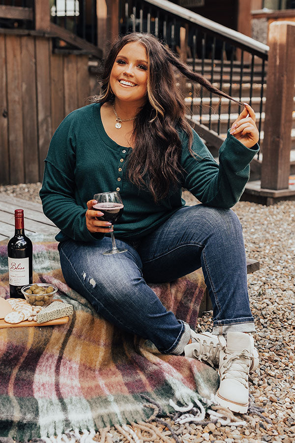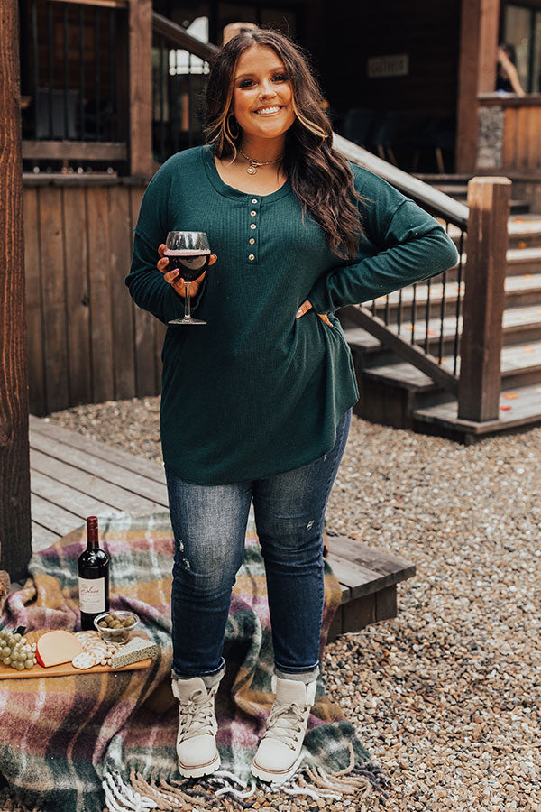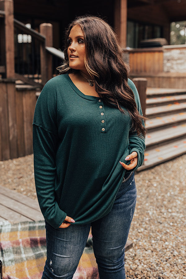 There is no better fall layering piece with our casual cute plus size hunter green 'Fall Delight Shift Top' featuring soft lightweight material with subtle vertical ribbed texturing, a button up bodice with a scooped neckline, long loose sleeves, and a relaxed silhouette that falls into a rounded hemline! Measurements
