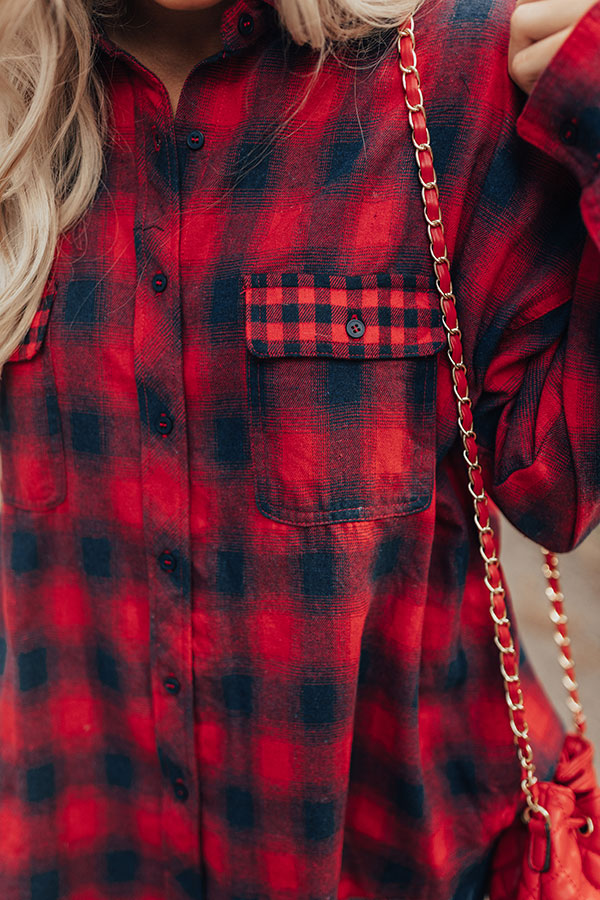 You won't find a more timeless seasonal piece than our adorable 'Fall Hike' top featuring warm patterned with a navy and red flannel print, a button down front with a collared neckline, long loose sleeves, black buffalo check accents on the button closure cuffs and button closure chest pockets, and a relaxed silhouette that falls into a rounded hemline! Measurements