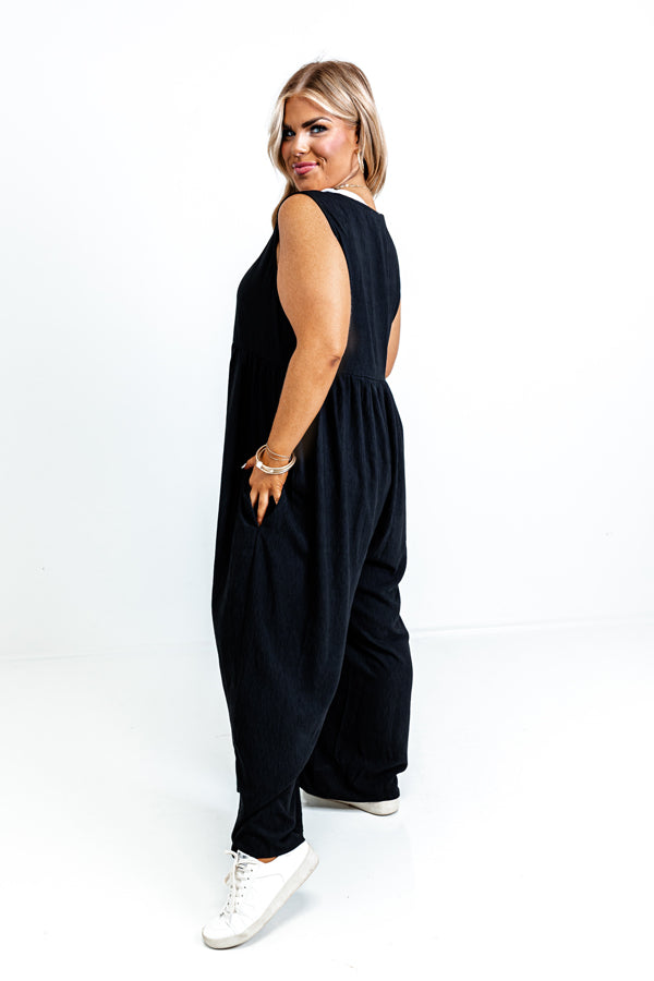 Fall Into Happiness Jumpsuit in Black Curves