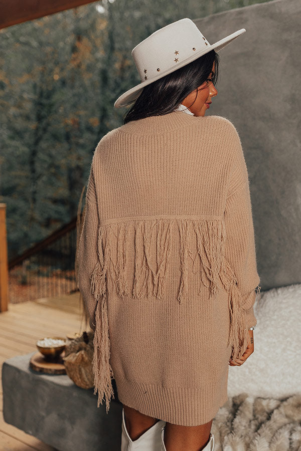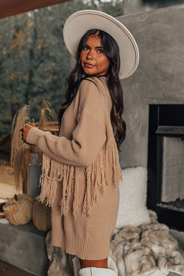 Fall Latte Fringe Sweater Dress in Iced Latte