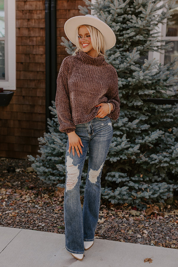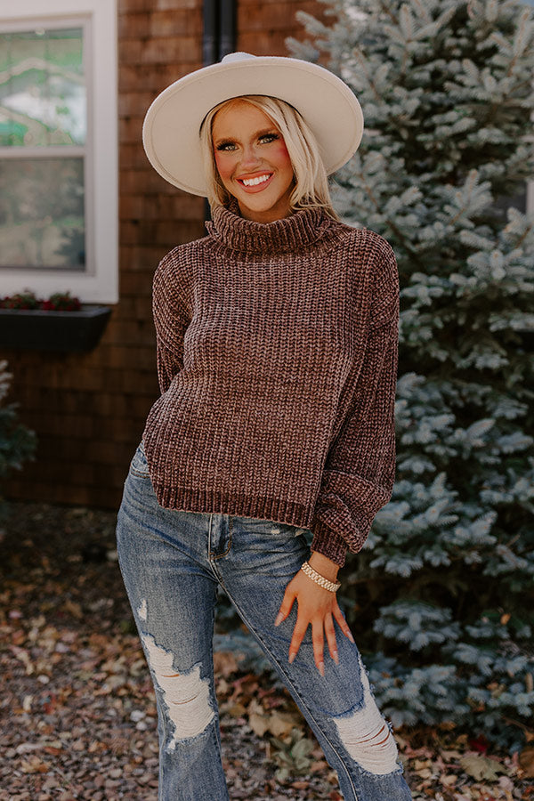 Fall Leaves Chenille Sweater In Mocha